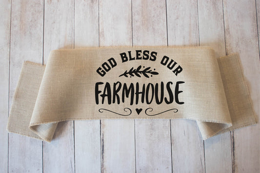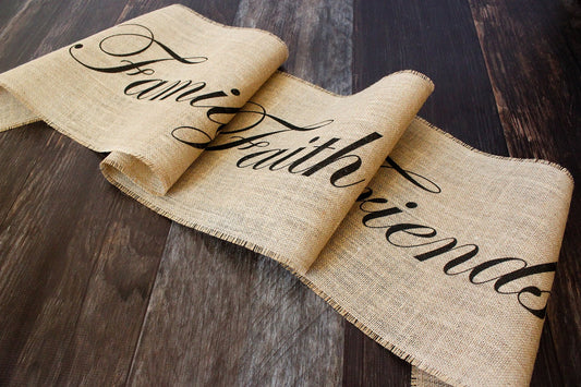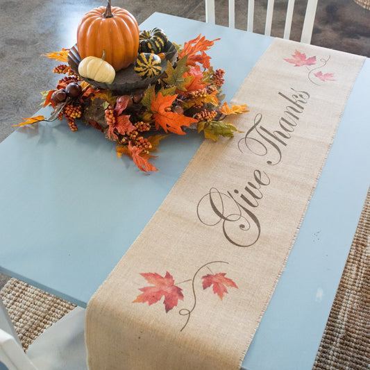 Give Thanks Thanksgiving Burlap Table Runner w/ Maple Leaves
