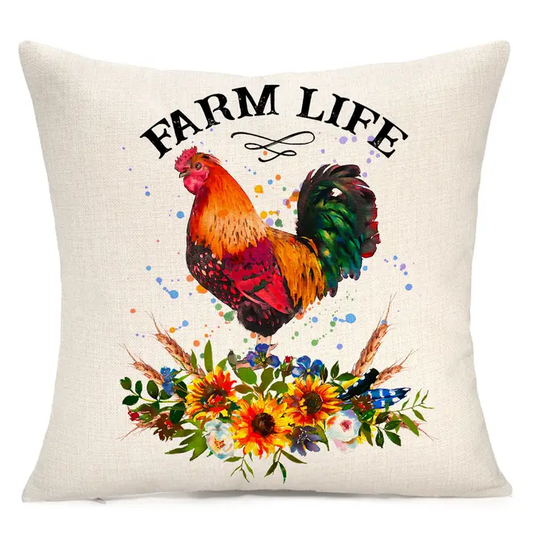 Farm Life Rooster Throw Pillow – Rustic Farmhouse Home Decor