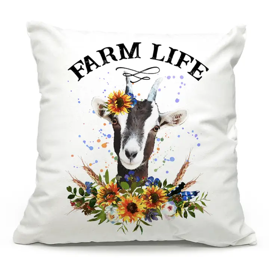 Farm Life Goat Throw Pillow – Rustic Farmhouse Home Decor
