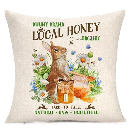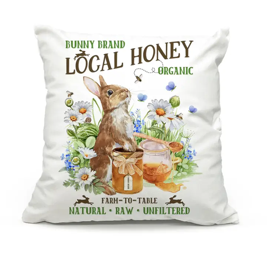 Bunny Brand Honey Throw Pillow – Perfect for Spring & Easter Home Decor