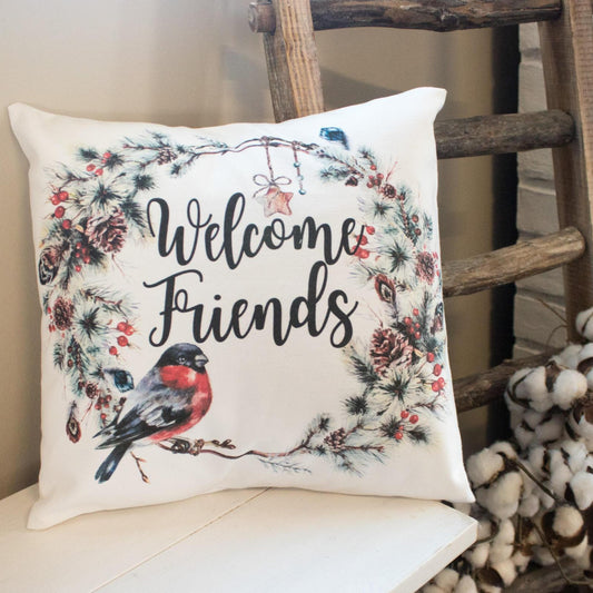Welcome Friends Christmas Wreath throw pillow AND insert