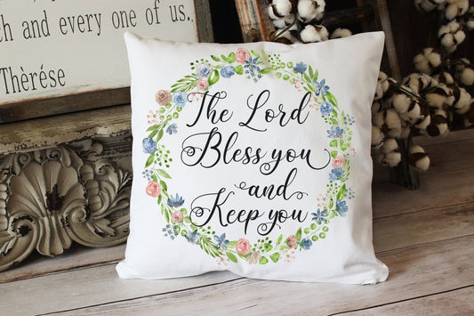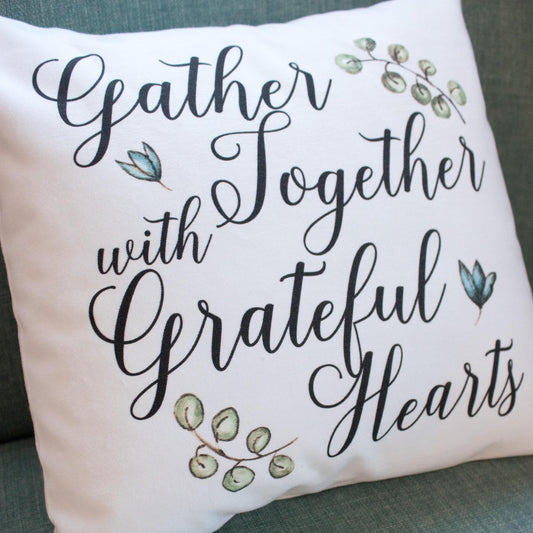 Grateful Thankful Blessed throw pillow - soft off white twill throw pillow WITH insert