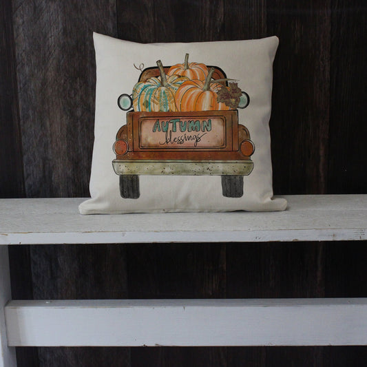 Pumpkin Spice on natural twill throw pillow - rustic farmhouse style gift
