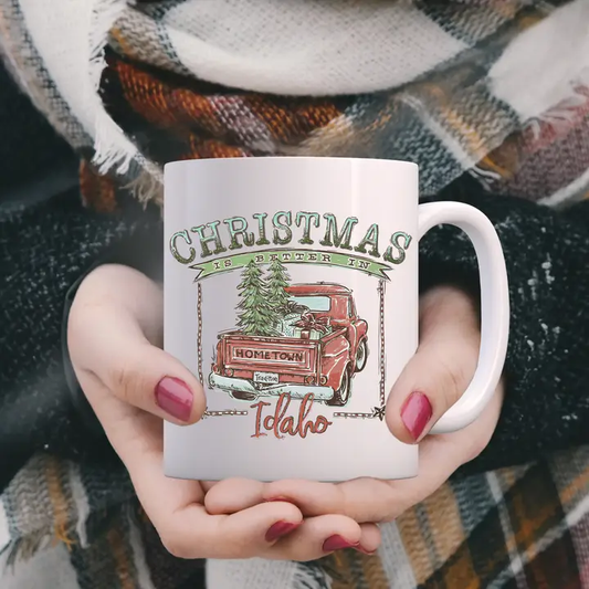 Christmas is Better in Idaho White Ceramic Mug - Red Design
