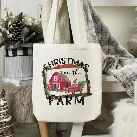 Christmas Gift Tote Bag Christmas On The Farm Tote Bag Christmas Gift Bag Vacation Tote Bag Christmas Gift Tote Bag Christmas Cute Tote Bag