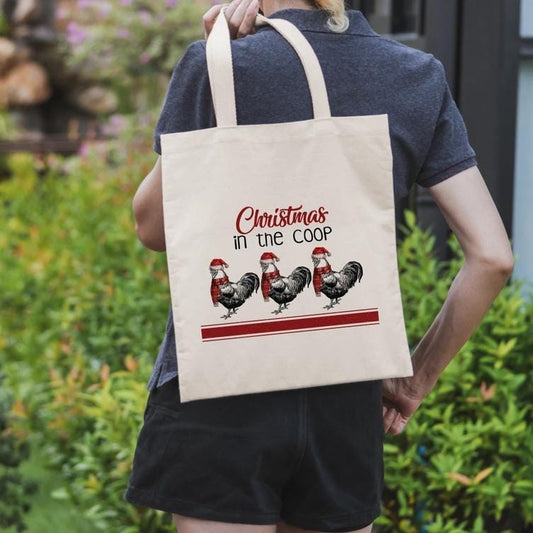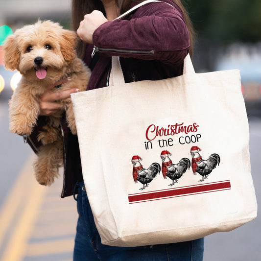 Christmas In The Coop canvas tote bag - premium canvas carryall bag perfect for books, shopping or a reusable grocery bag