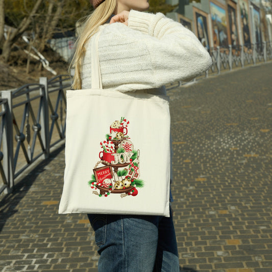 Christmas Tiered Tray canvas tote bag - premium canvas carryall bag perfect for books, shopping or a reusable grocery bag