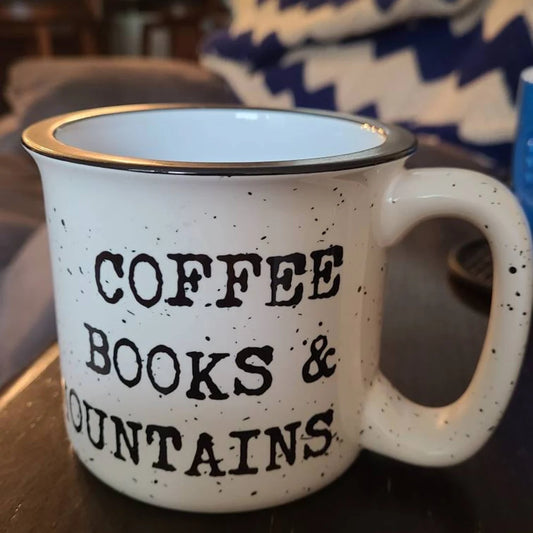 Coffee Books and Mountains Ceramic Coffee Mug