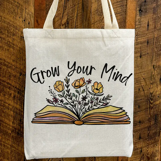 Grow Your Mind Canvas Tote Bag – Inspirational Book Lover’s Bag