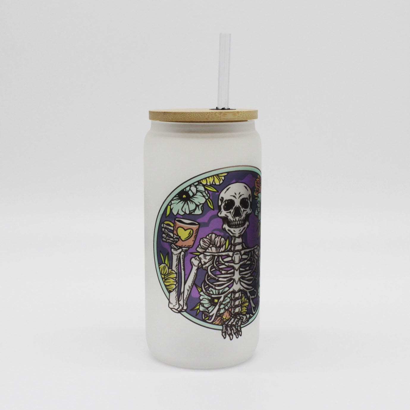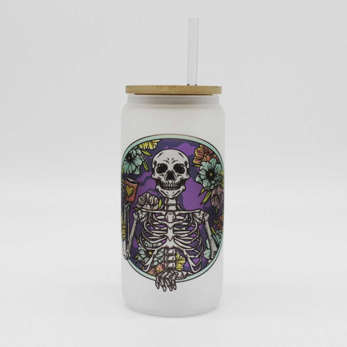 Indulge in your love for coffee with this adorable 18oz Skeleton Frosted Glass Cup! Whether you're sipping on iced coffee, tea, or your favorite cold drink, this mug is sure to make a statement. It's a perfect treat for yourself or a thoughtful gift for your fellow caffeine lovers!