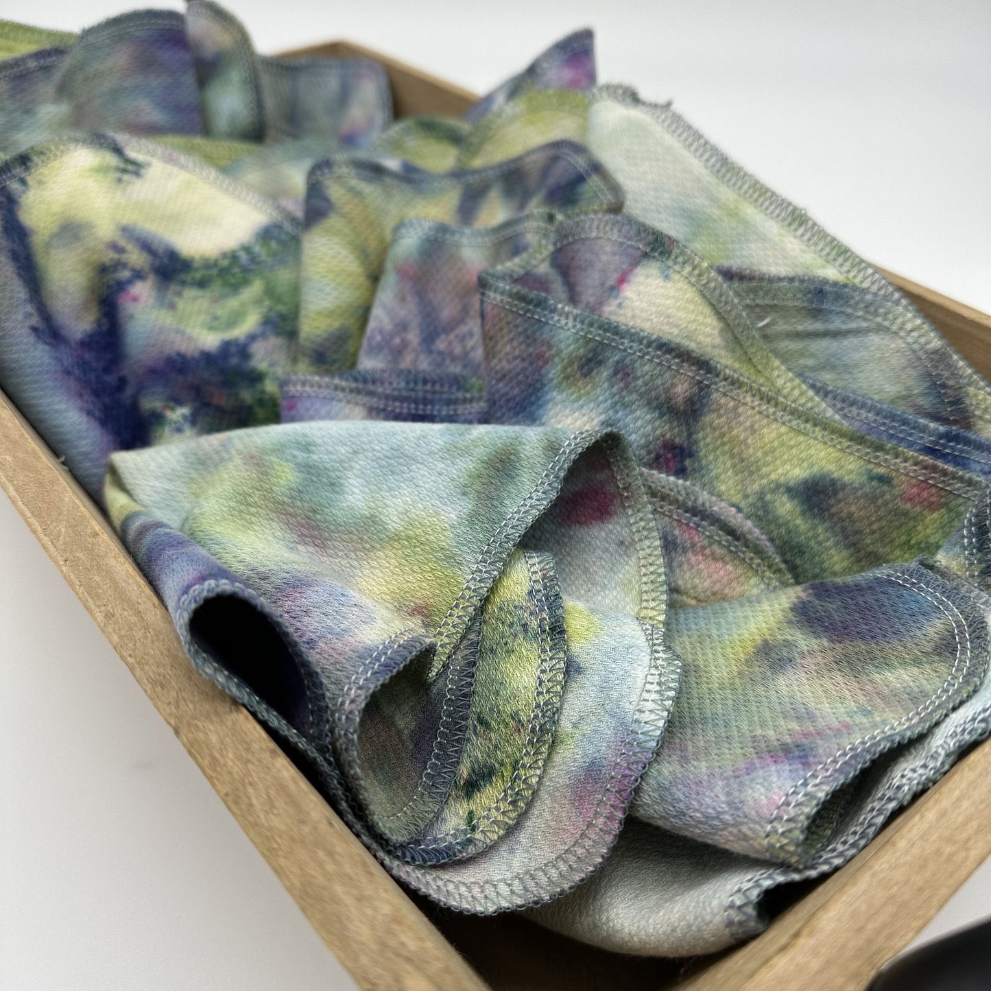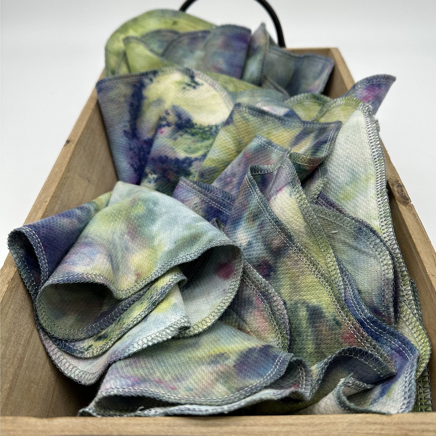 Ice dyed with professional fiber reactive dyes, our newest line of paperless towels are still the perfect paper towel replacement! They are as always, lint free, lightweight and reusable. This set is dyed on our natural birdseye cotton base, for a naturally muted look.