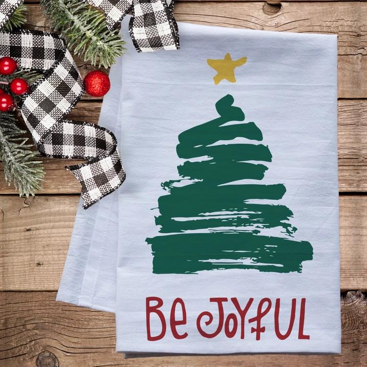 Be Joyful Christmas Tree Tea Towel Farmhouse Christmas Flour Sack Dish Towel Xmas Decor Tea Towel Christmas Tea Towel Xmas Kitchen Towel