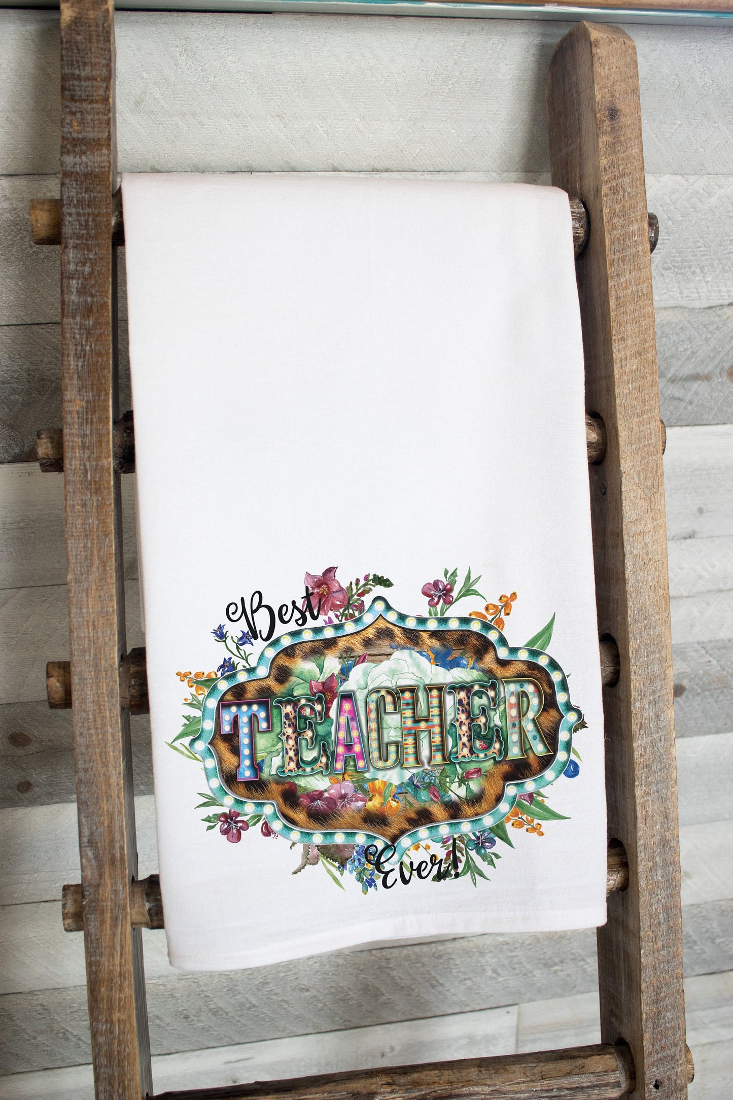 Celebrate the teacher in your life by gifting this colorful tea towel!