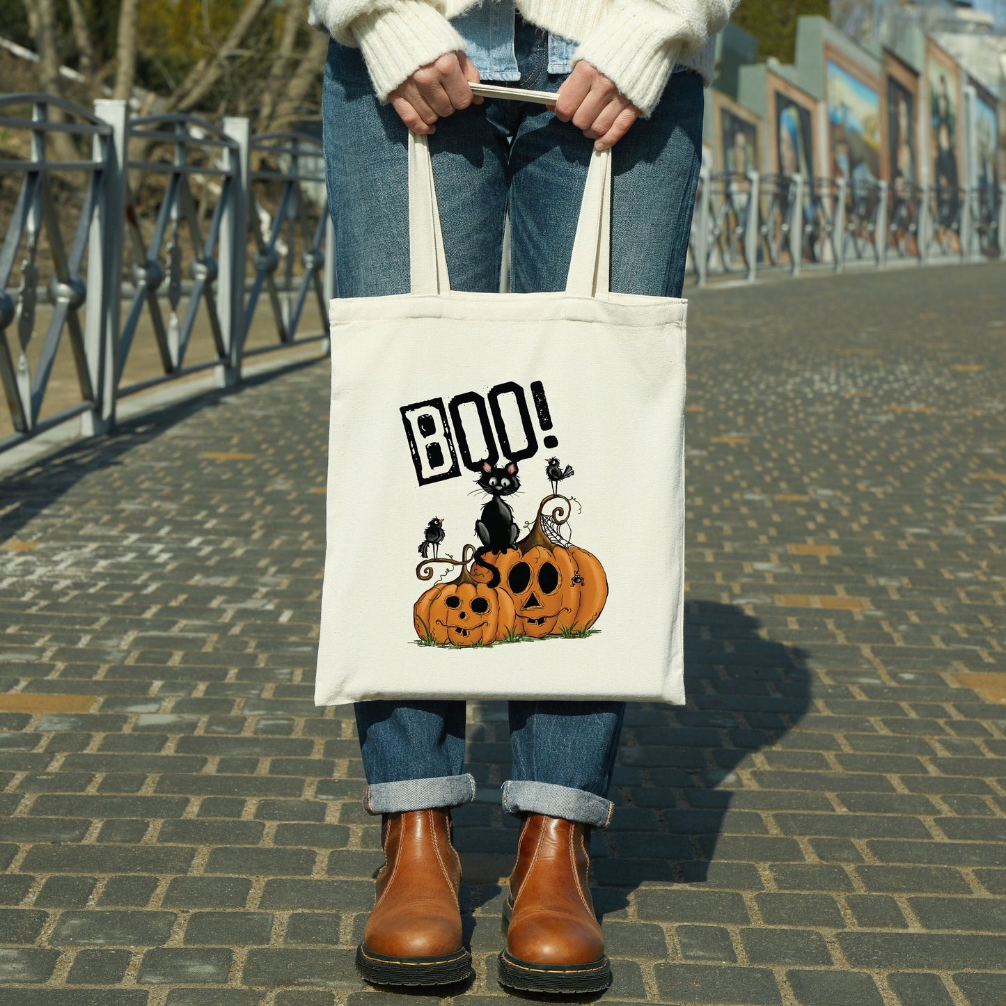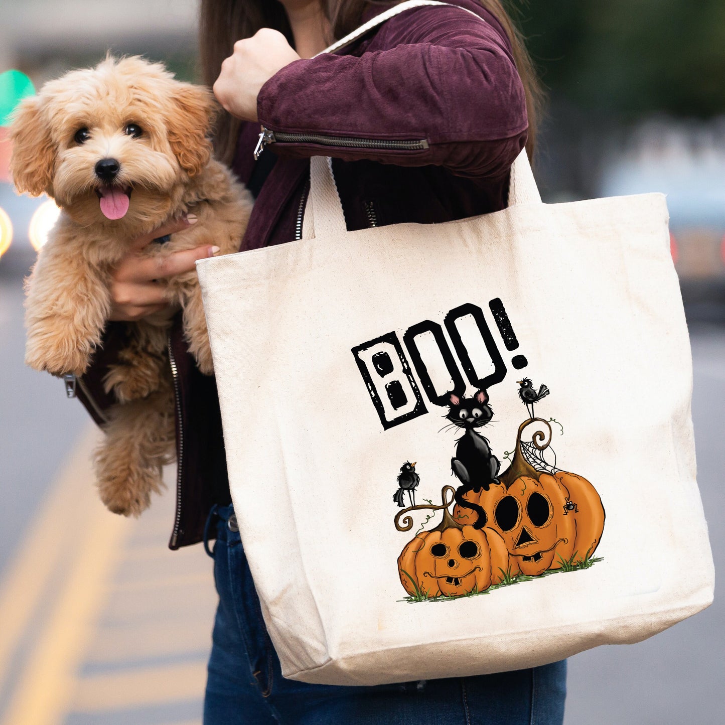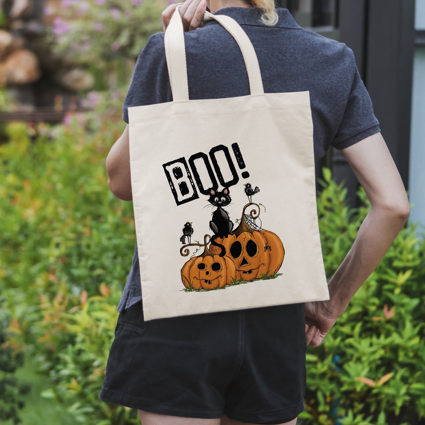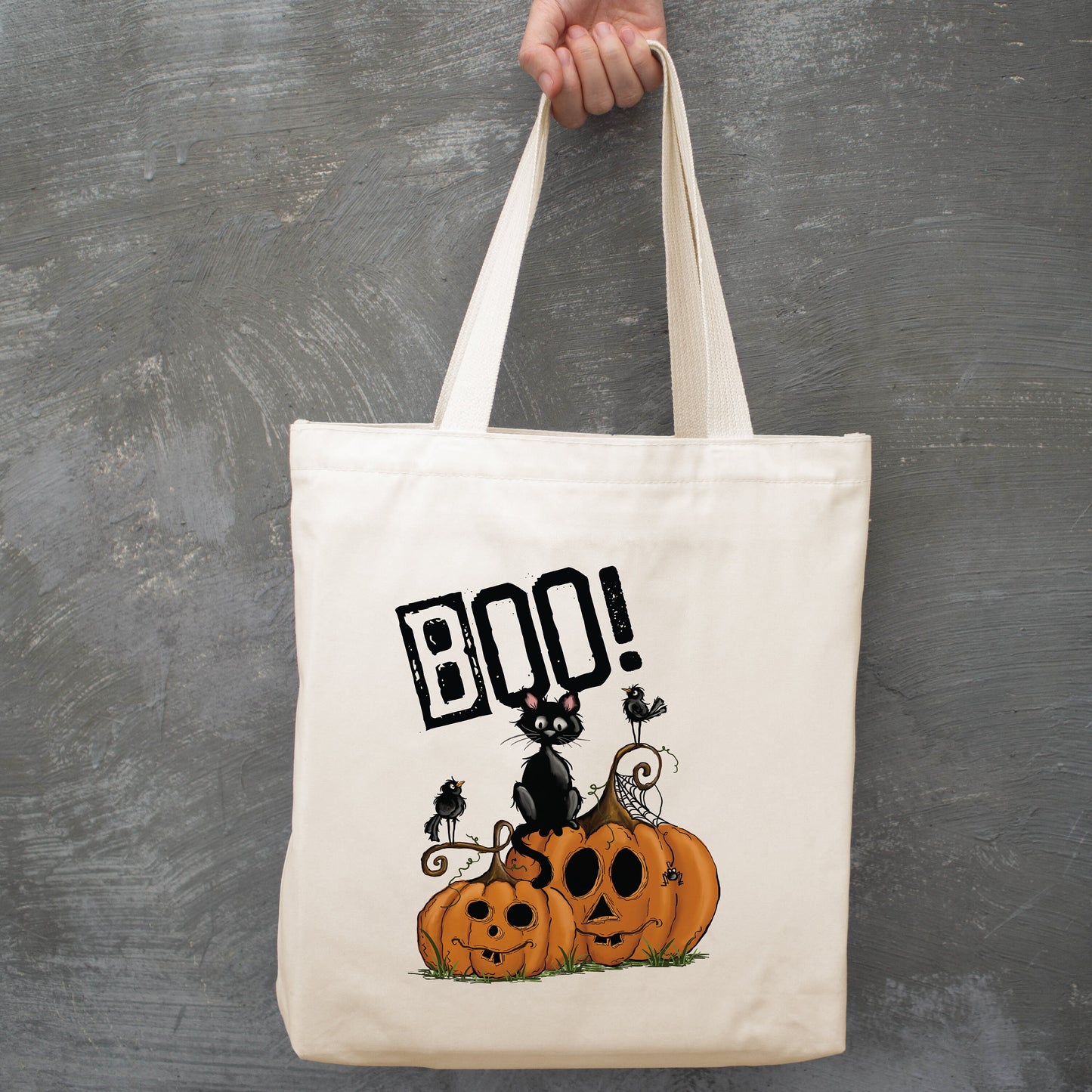 Boo! Cat & Crows canvas tote bag - premium canvas carryall bag perfect for books, shopping or a reusable grocery bag