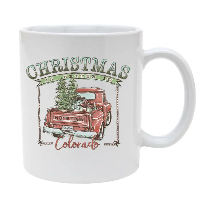 Sip your favorite holiday beverages with a touch of Colorado pride using our "Christmas is Better in Colorado" White Ceramic Mug (Red). This festive mug features a bold red "Christmas is Better in Colorado" design, making it the perfect addition to your holiday drinkware collection. Crafted from durable ceramic, it’s ideal for enjoying hot cocoa, coffee, or tea while celebrating the season.