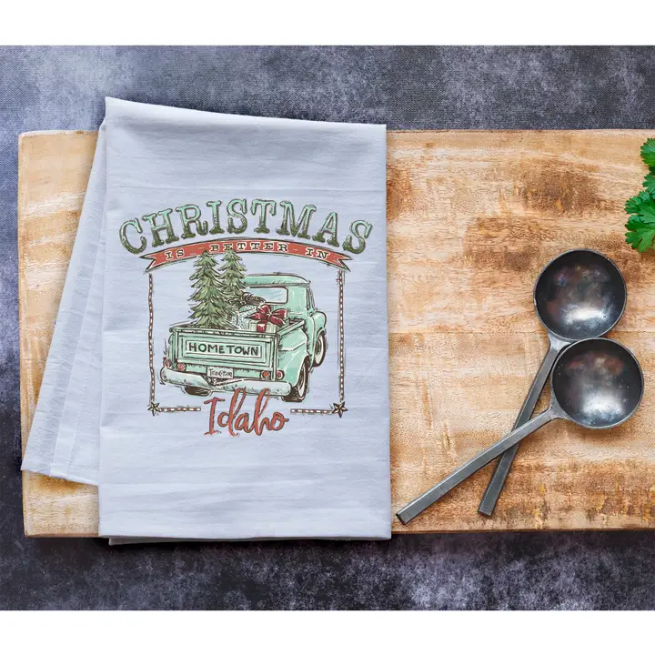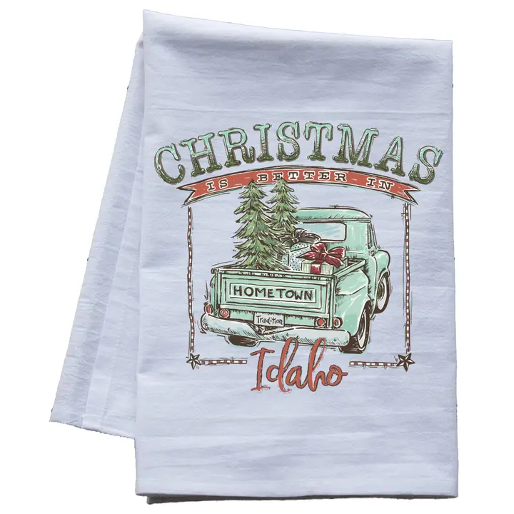 Christmas is Better in Idaho Flour Sack Tea Towel – Teal Design