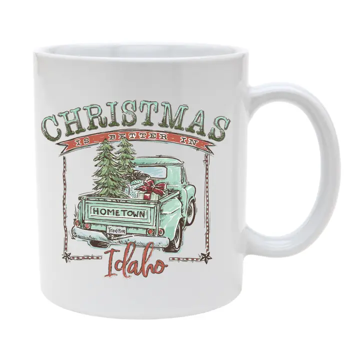 Christmas is Better in Idaho White Ceramic Mug - Teal Design