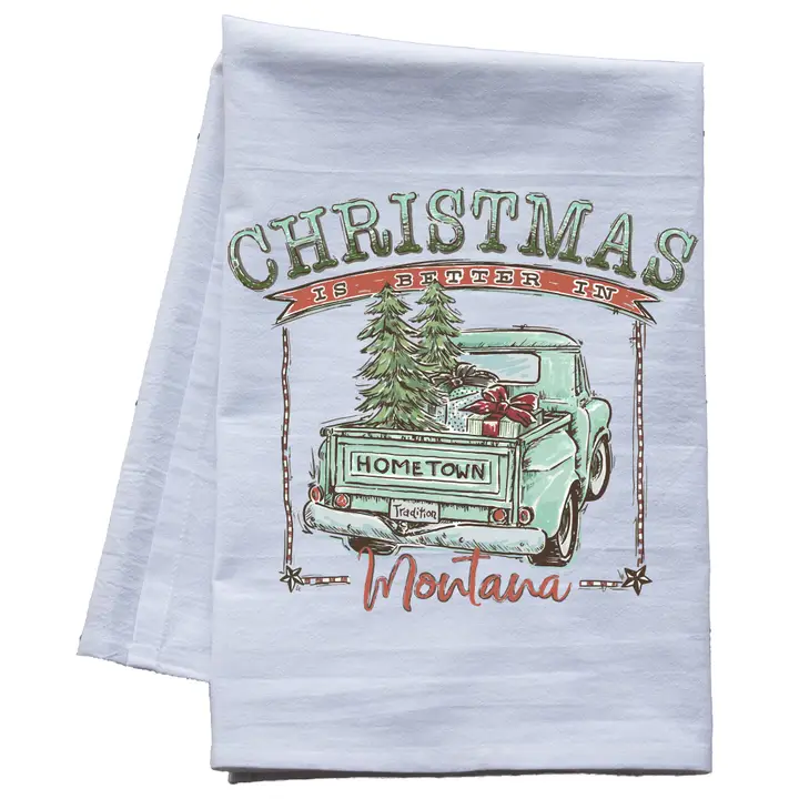 Christmas is Better in Montana Flour Sack Tea Towel - Teal Design