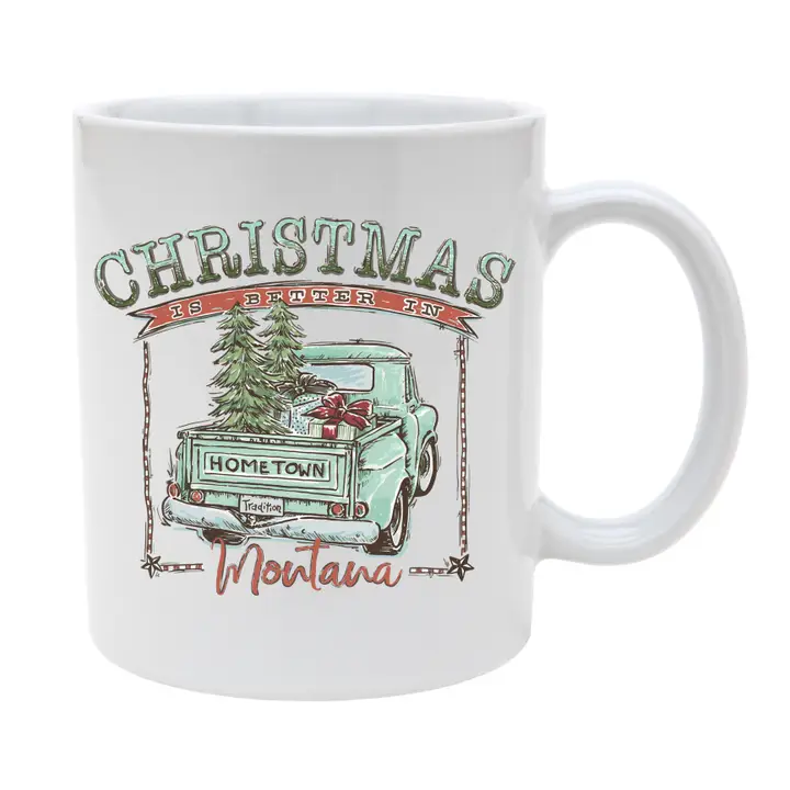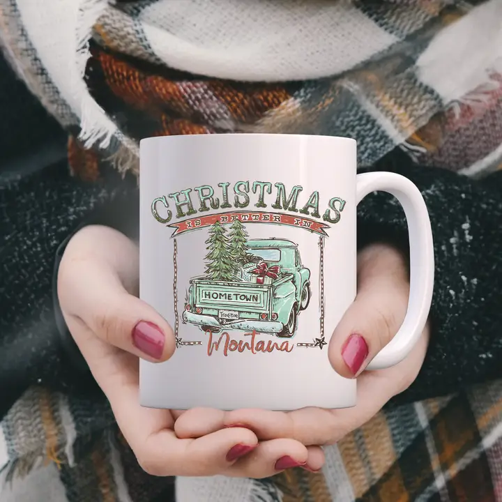 - Festive Teal Montana Design: Features a vibrant teal "Christmas is Better in Montana" graphic, adding a unique festive touch to your drinkware.