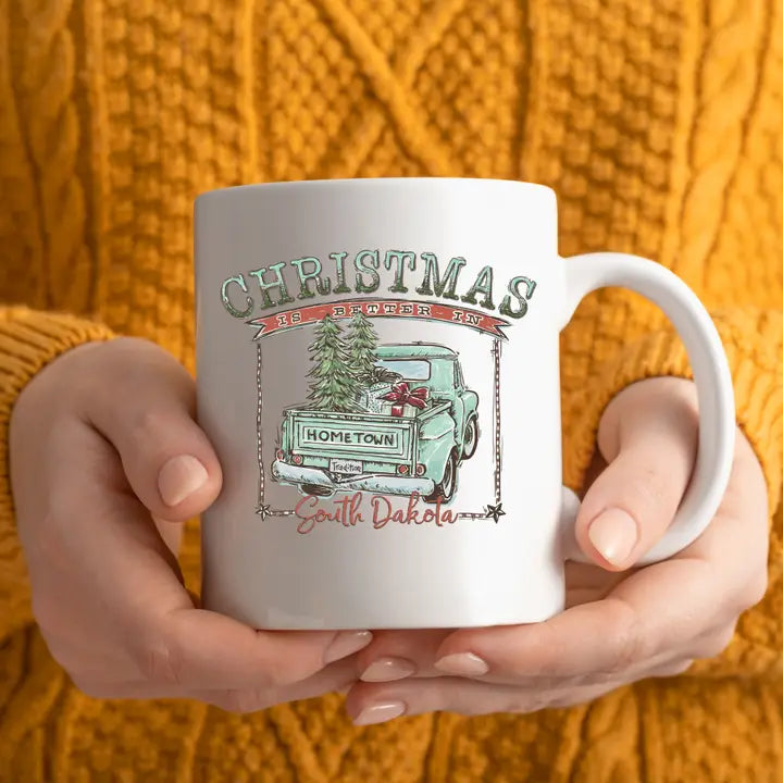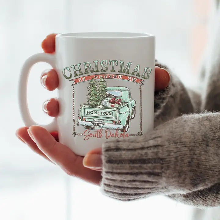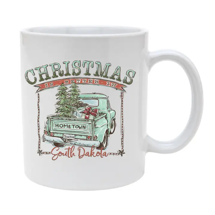 Christmas is Better in South Dakota White Ceramic Mug - Teal Design