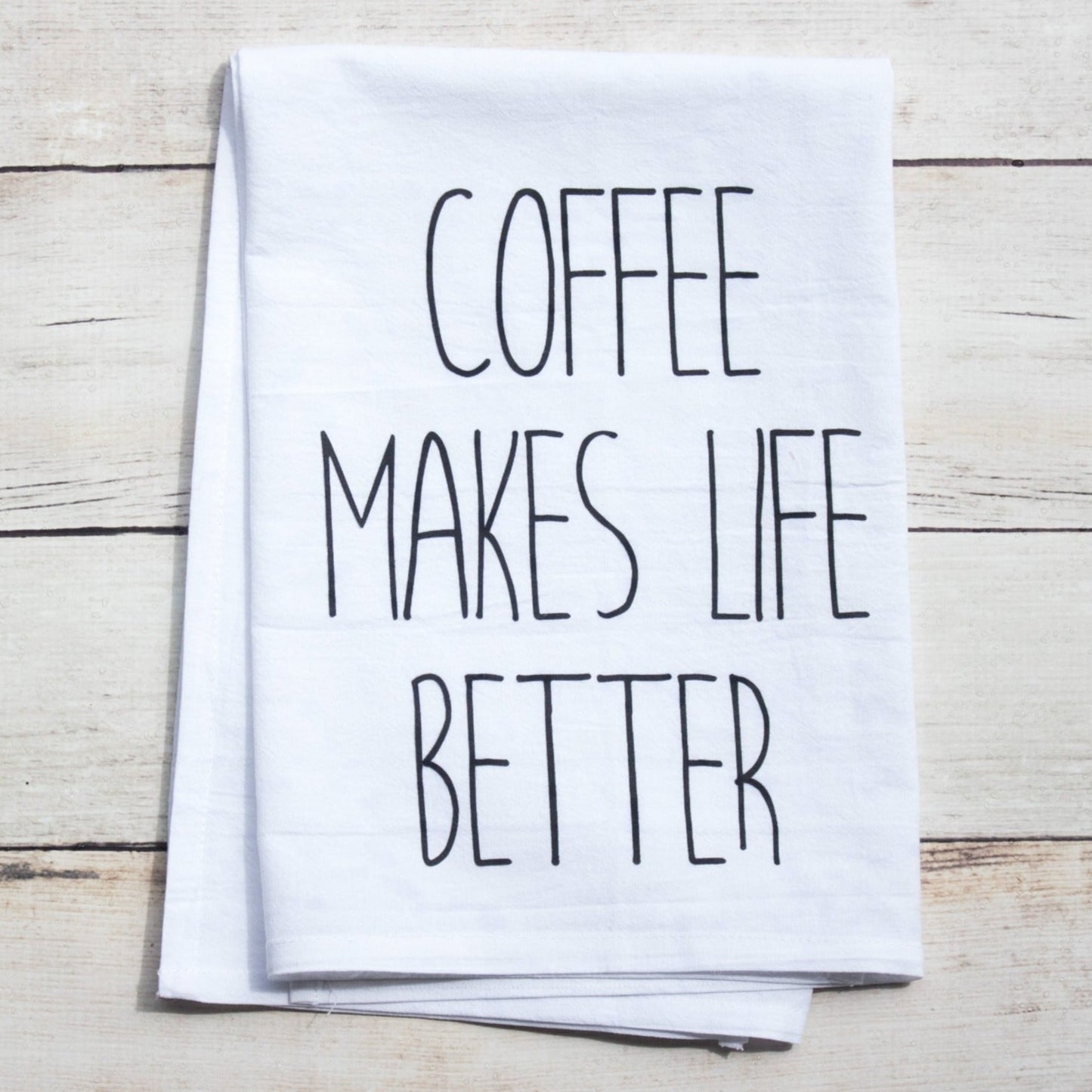Bring some vintage charm to your coffee station with this adorably cute tea towel. It's a perfect touch to a rustic coffee bar, pairs nicely with our coffee maker mat, and is a fantastic gift for a zillion occasions including: housewarming, birthday, co-worker gift exchange, teacher, boss, Aunt, truly anyone who enjoys coffee which is a WHOLE lot of people!
