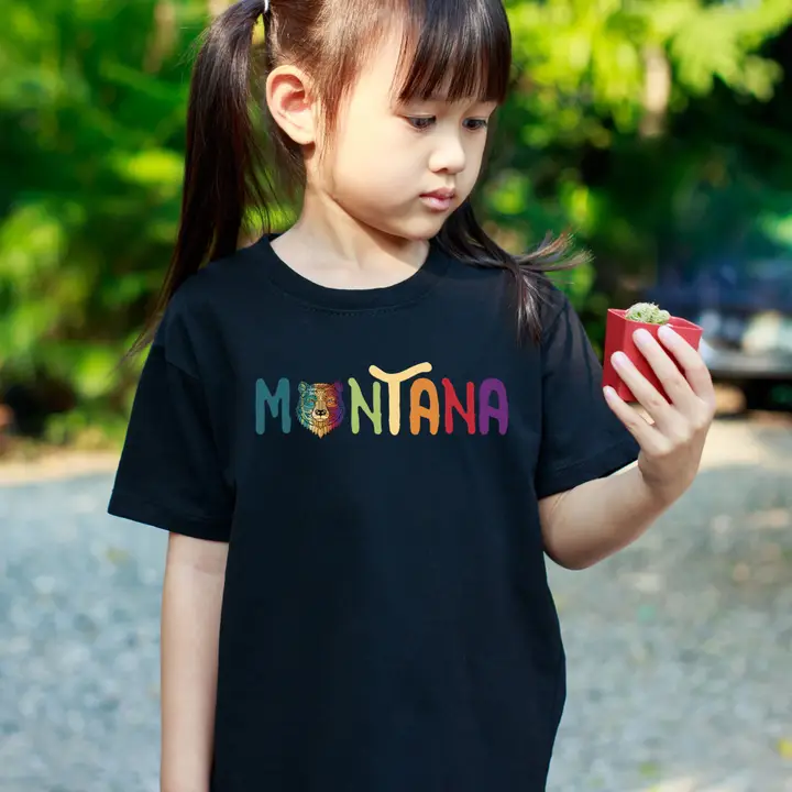 The eye-catching bear design is inspired by the wild beauty of Montana, making this shirt a fun and unique addition to your child’s wardrobe. Whether they’re out exploring or enjoying a cozy day at home, this t-shirt is sure to become a favorite.