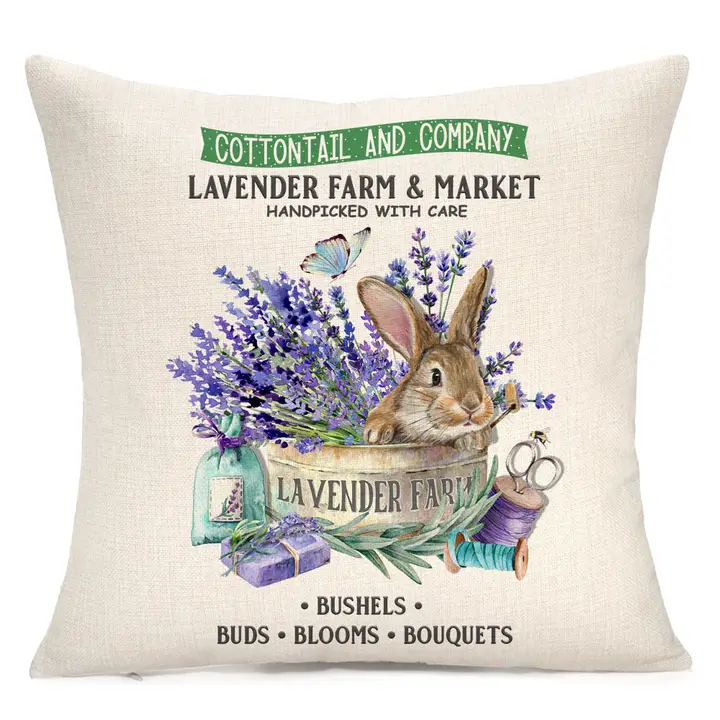Cottontail Lavender Farm Throw Pillow – Perfect Spring Home Decor