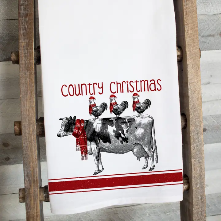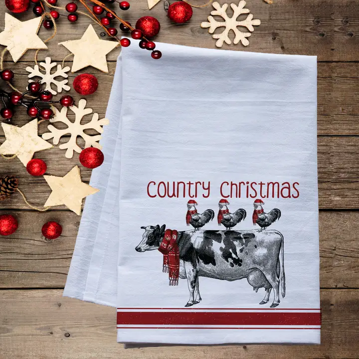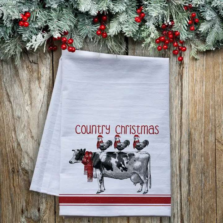 Country Christmas Flour Sack Tea Towel – Rustic Holiday Kitchen Decor