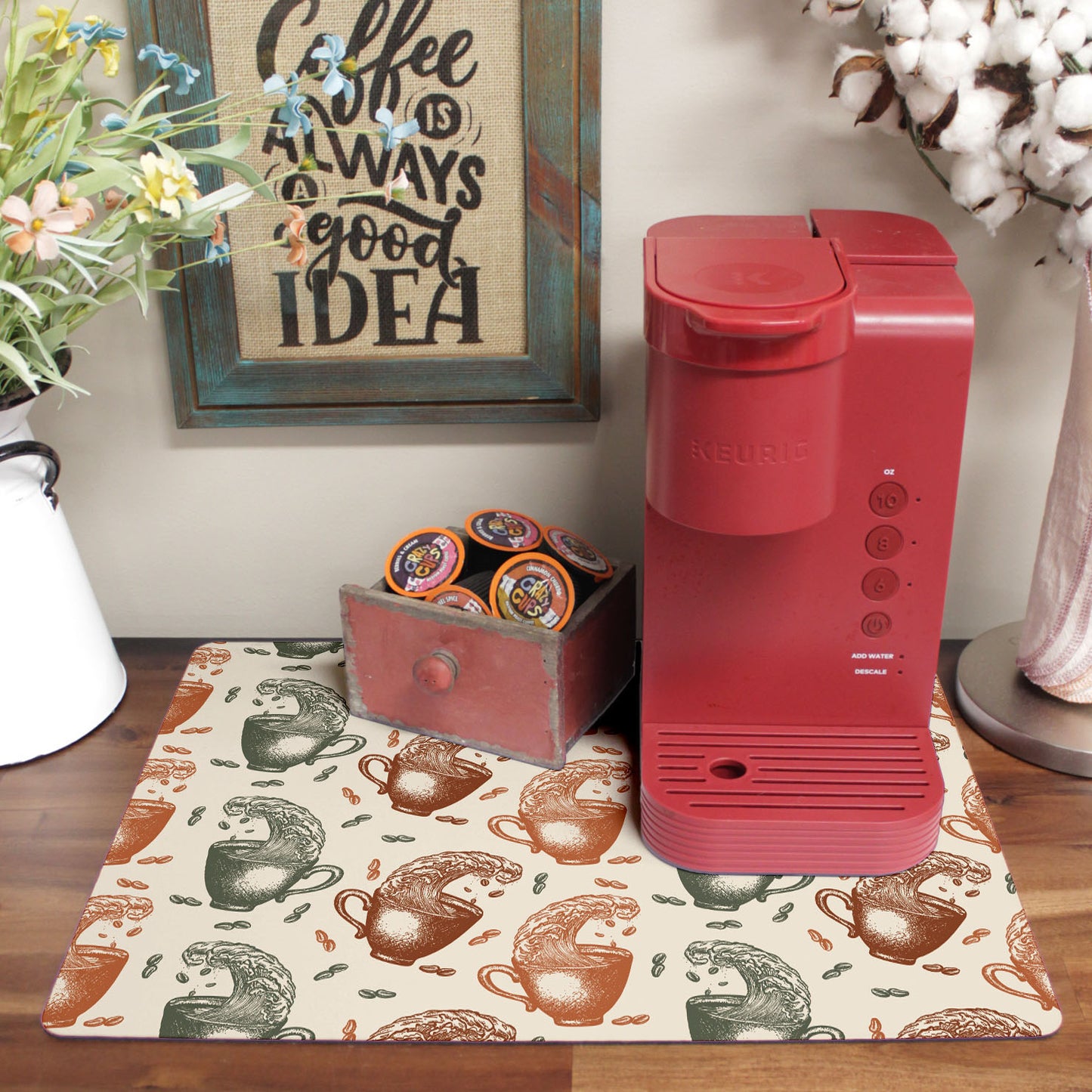 Add a touch of vintage charm to your coffee station with our beautifully designed Vintage Coffee Art Mat. This mat showcases an intricate pattern of classic coffee cups and beans, bringing a nostalgic feel to your kitchen or office space. Perfect for placing under your coffee maker, it protects your countertop from spills and stains while enhancing your décor. Made from durable, easy-to-clean material, this mat is both functional and stylish. Elevate your coffee experience with a mat that combines practicality and aesthetic appeal. A delightful addition for any coffee enthusiast!