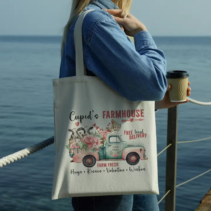Celebrate love with rustic charm using our "Cupid's Farmhouse" Canvas Tote Bag. Featuring a delightful farmhouse-inspired Valentine’s Day design, this tote is perfect for carrying groceries, gifts, or essentials while adding a touch of festive flair to your outings. Made from durable, eco-friendly canvas, this spacious tote combines practicality with Valentine’s Day spirit, making it a must-have for the season.