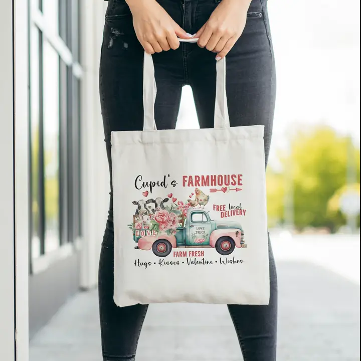 Cupid's Farmhouse Canvas Tote Bag – Valentine's Day Shopping & Gift Bag