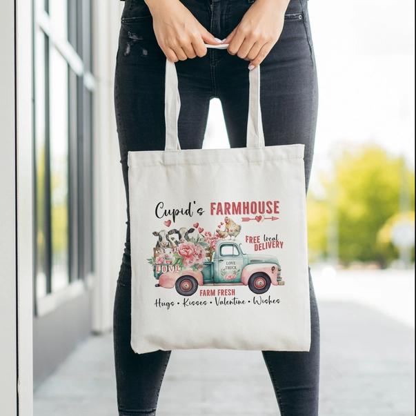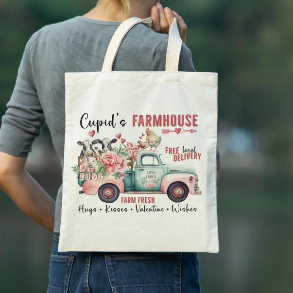 Cupid's Farmhouse Christmas Gift Tote Bag Tote Bag Xmas Gift For Christmas Tote Bag Cupids Bakery Valentine Treats Gift Rustic Wood Holiday Gift