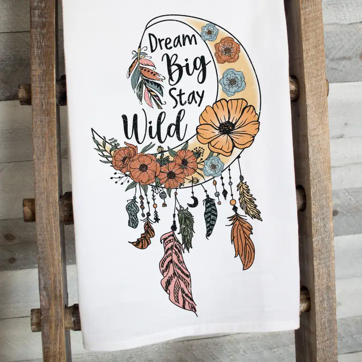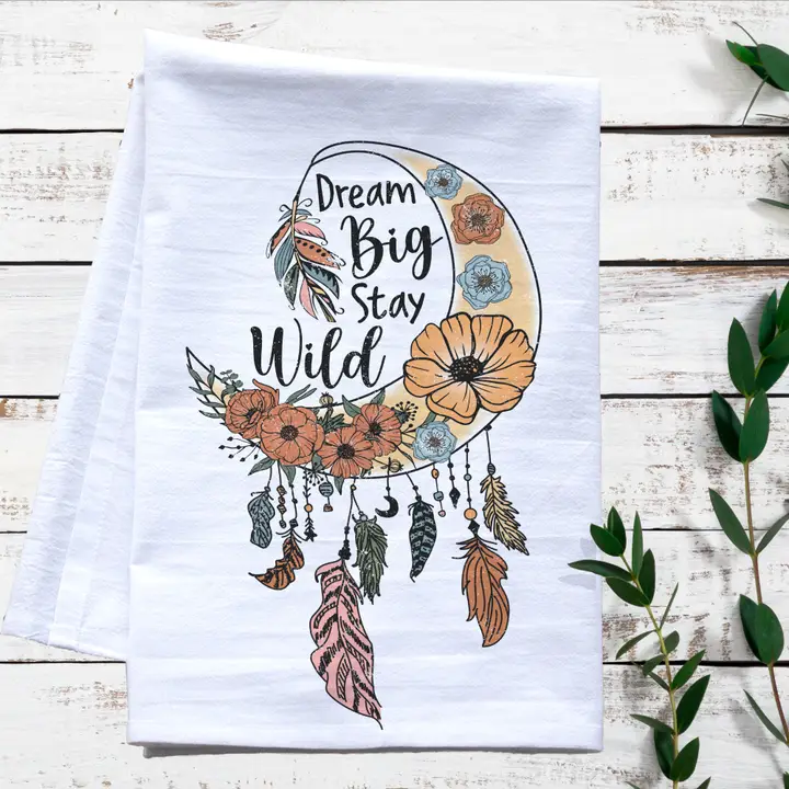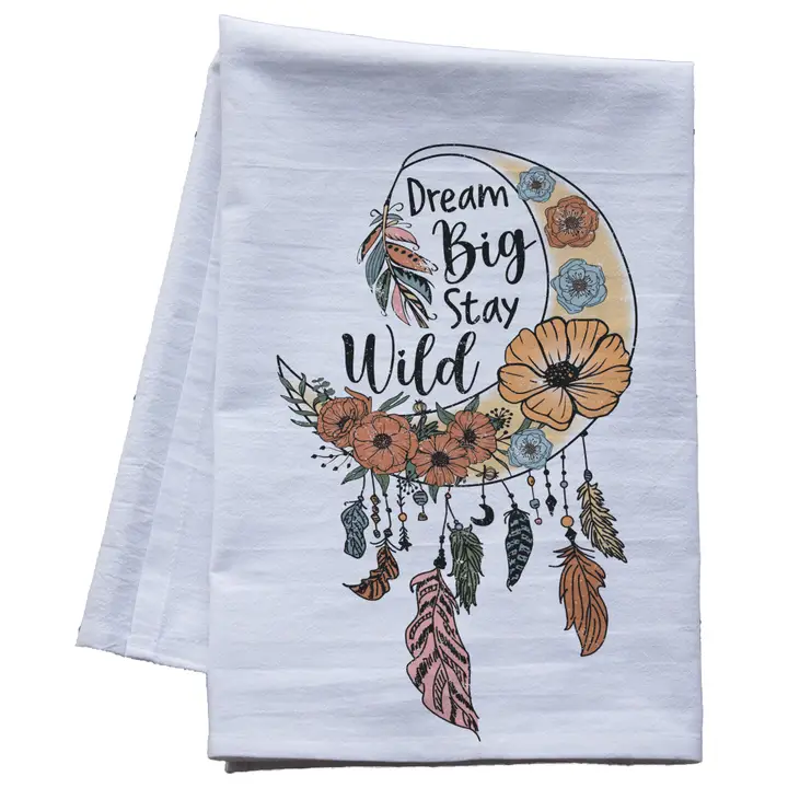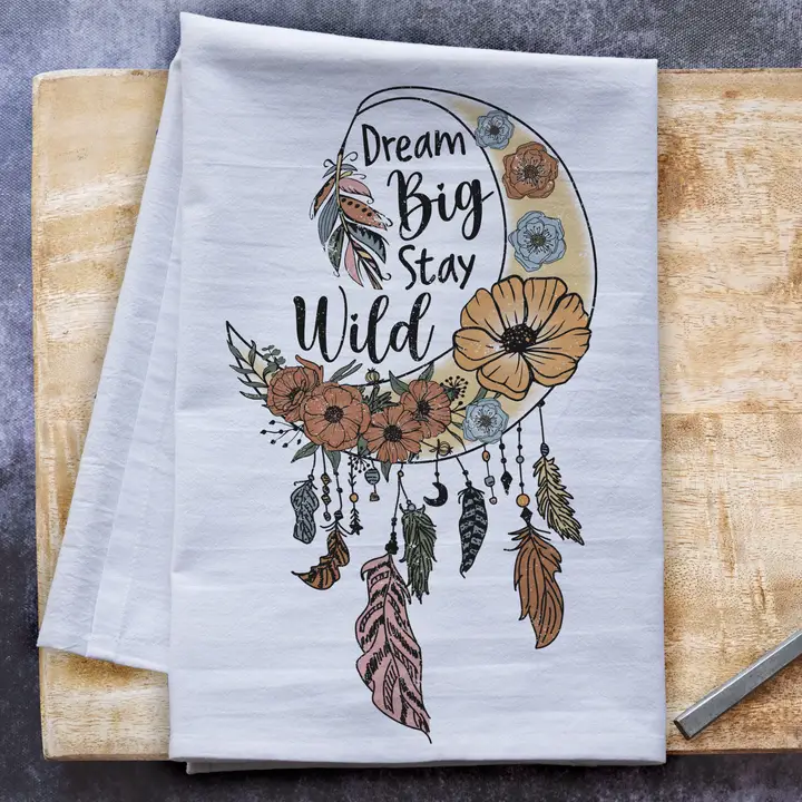 Dream Big Moon Flour Sack Tea Towel – Boho-Inspired Kitchen Decor