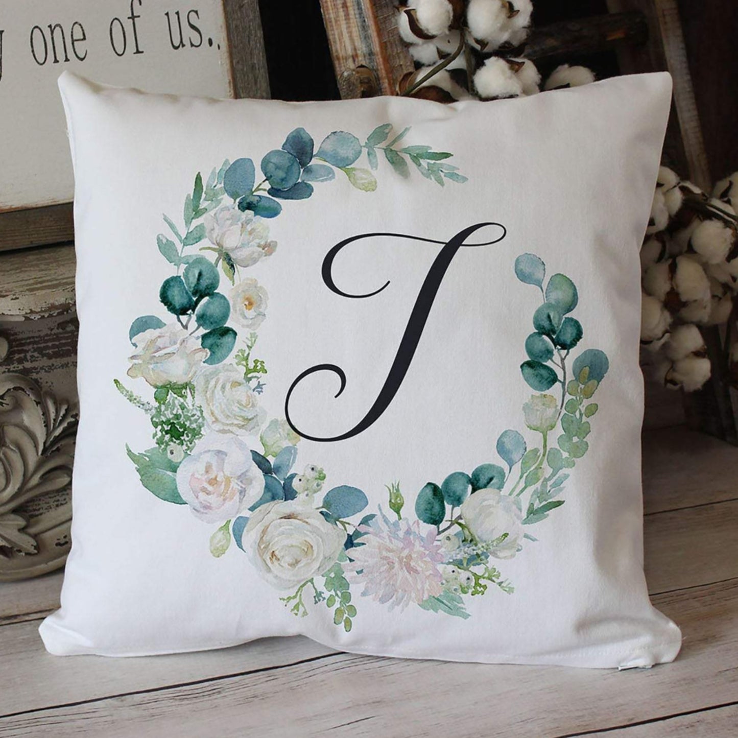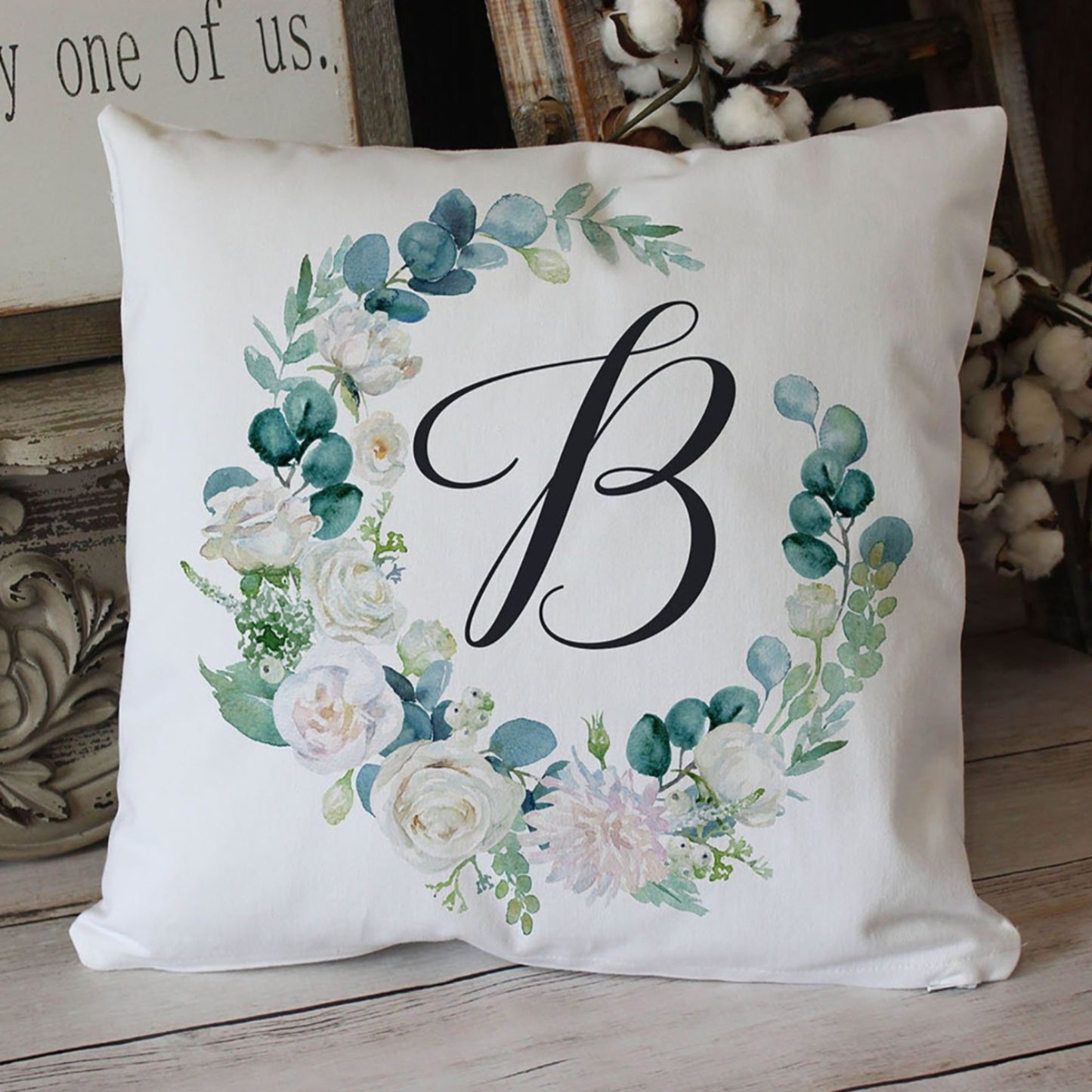 This elegant pillow features your monogram in a classy dark grey at the center of the wreath. Gift this super soft, white twill throw pillow as a beautiful housewarming, anniversary or wedding gift, or keep it to add to your own home decor. It's perfect for a bedroom, an entryway bench, or even a sitting chair in your office or craft room!