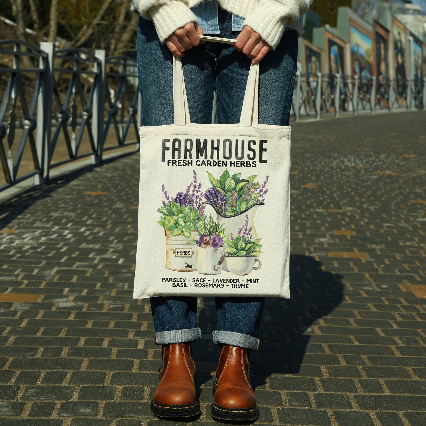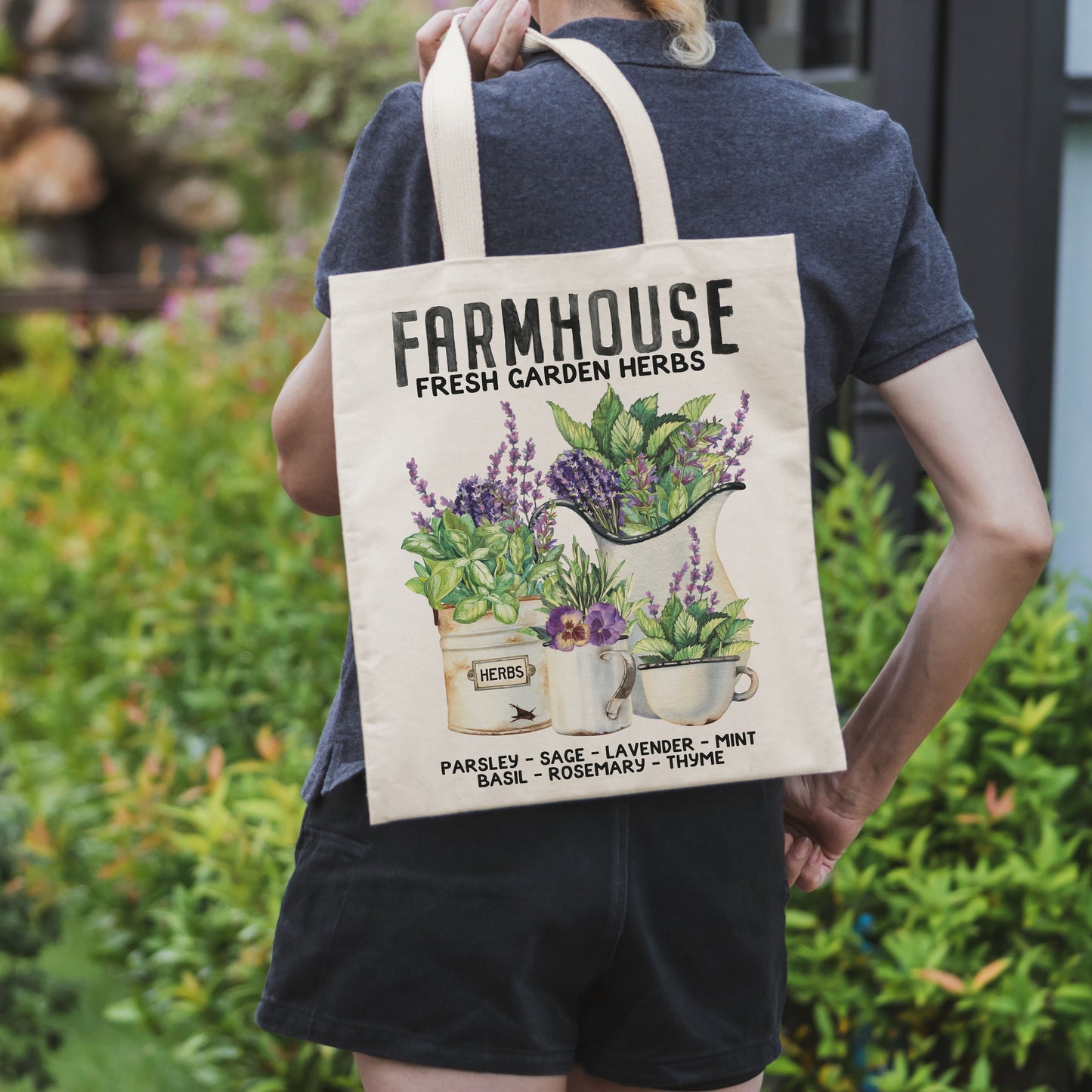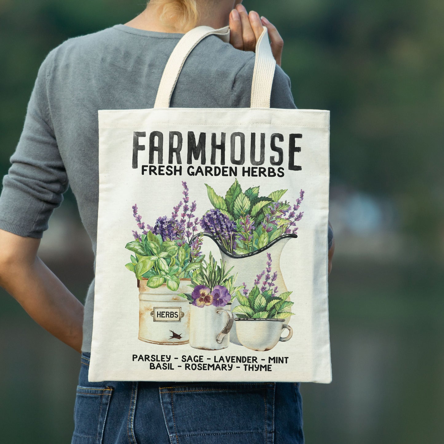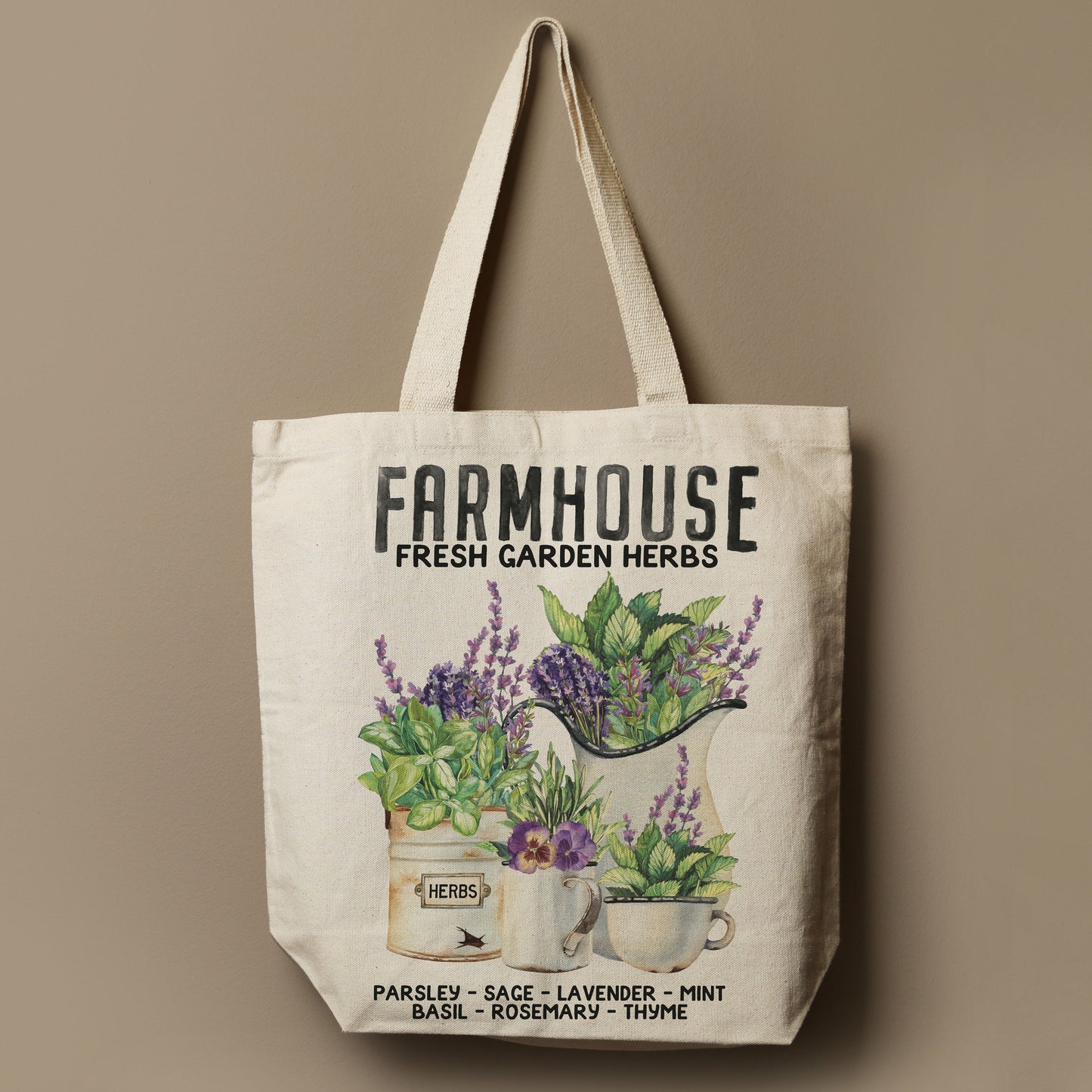 Introduce a touch of natural beauty to your daily style with our Farm Fresh Herbs canvas tote bag. Made from premium textured canvas, this tote features a stunning print of [describe design] that is sure to catch the eye. Whether you love visiting farmers markets or have a passion for wildflowers, this tote is the perfect accessory for you.