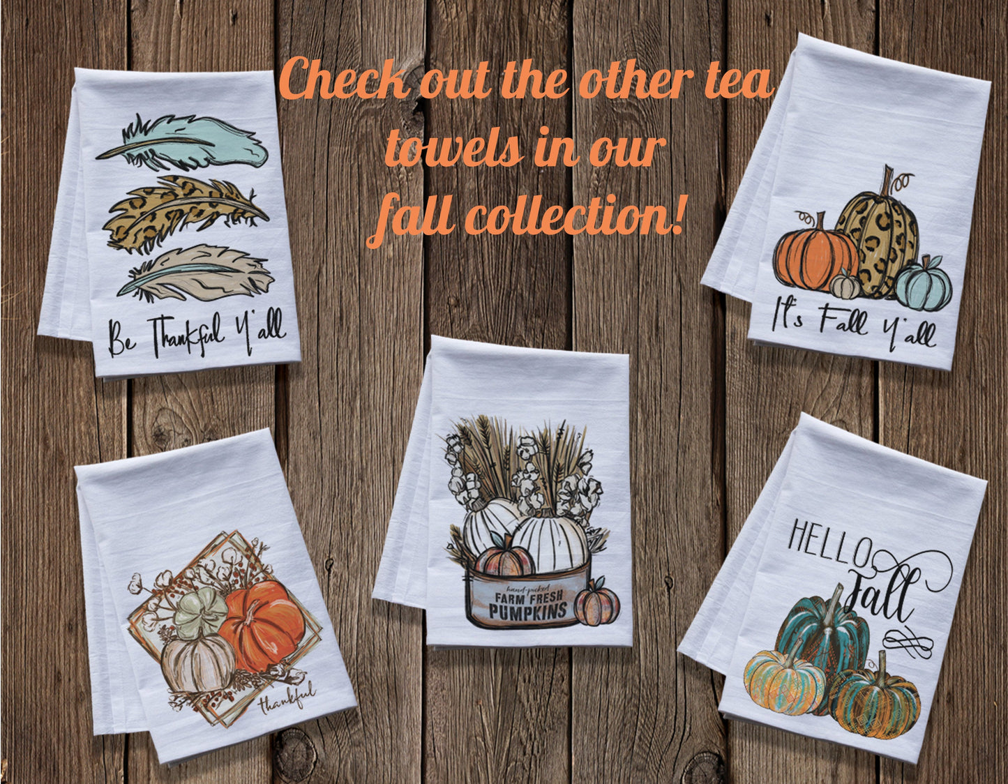 Welcome the change of season with this delightful flour sack tea towel! Does it get better than pumpkins and cotton branches? I don't think so.
