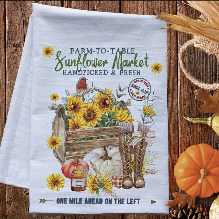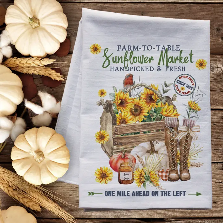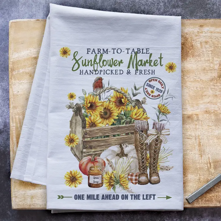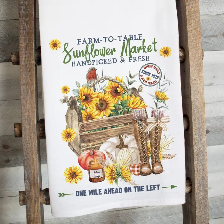 Farm to Table Sunflower Market Flour Sack Tea Towel – Rustic Kitchen Decor