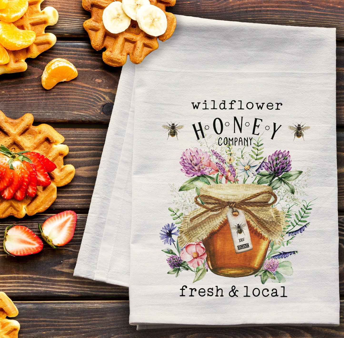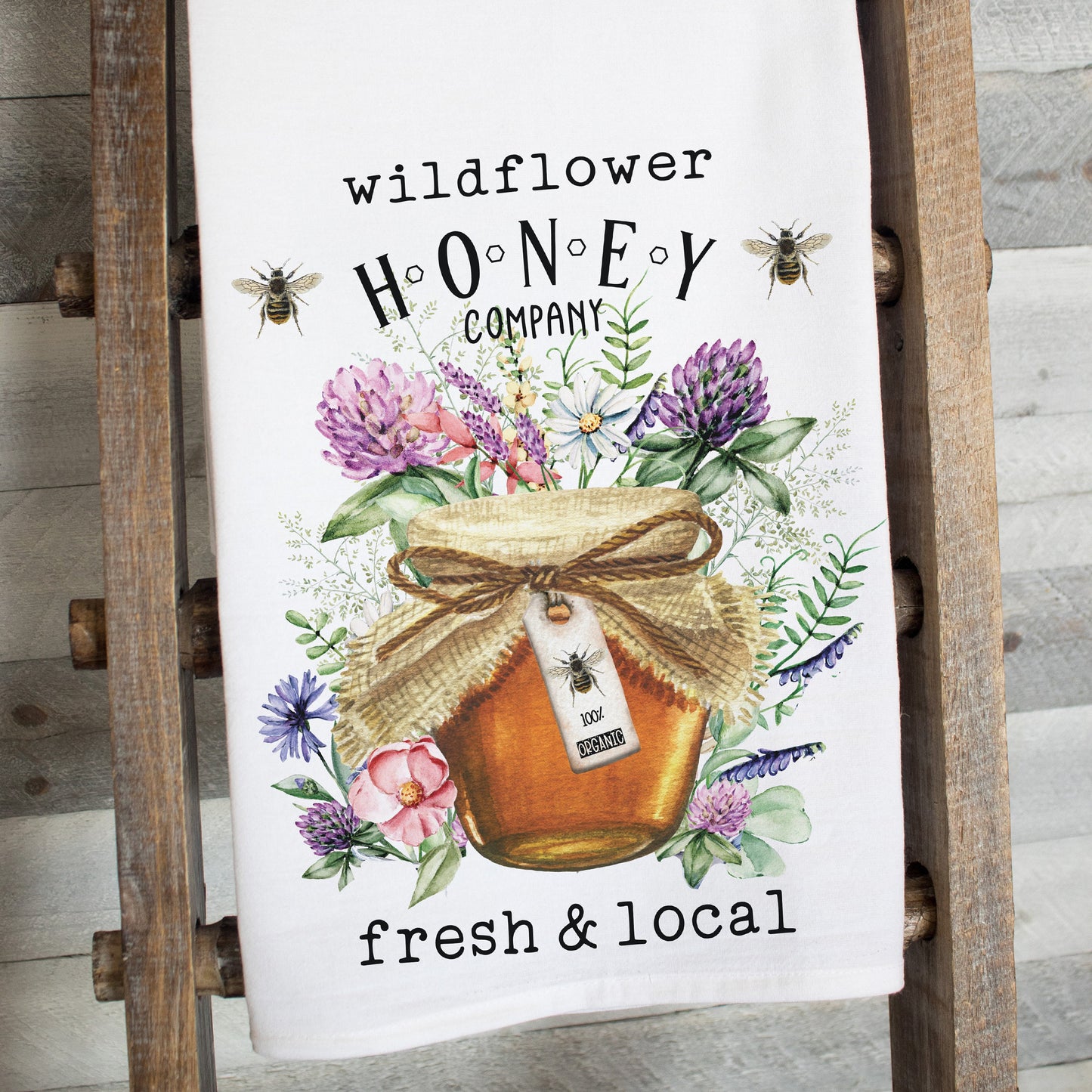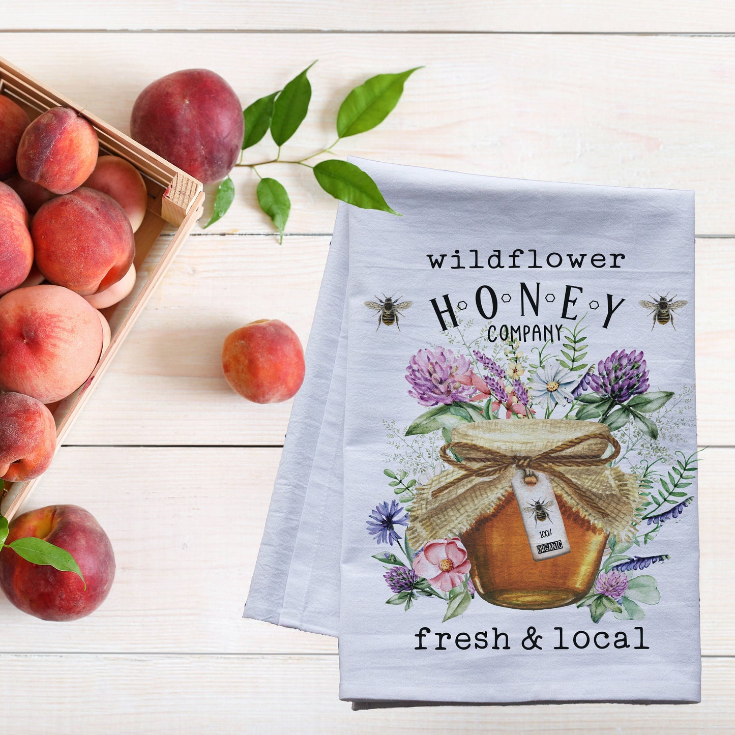 Bring the farmer's market into your home with this colorful honey bee farm tea towel! Get your house ready for summer with this adorable farmhouse style, farmer's market inspired tea towel!