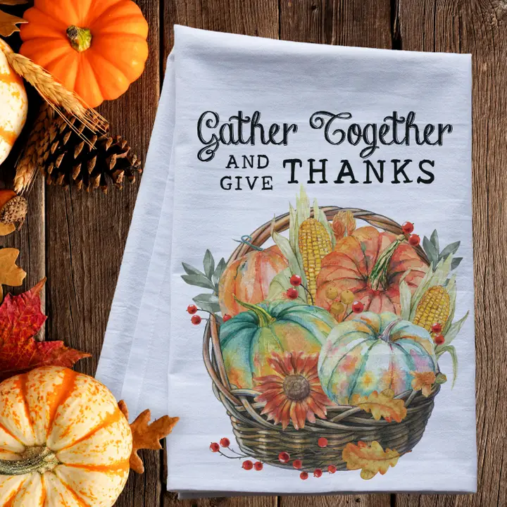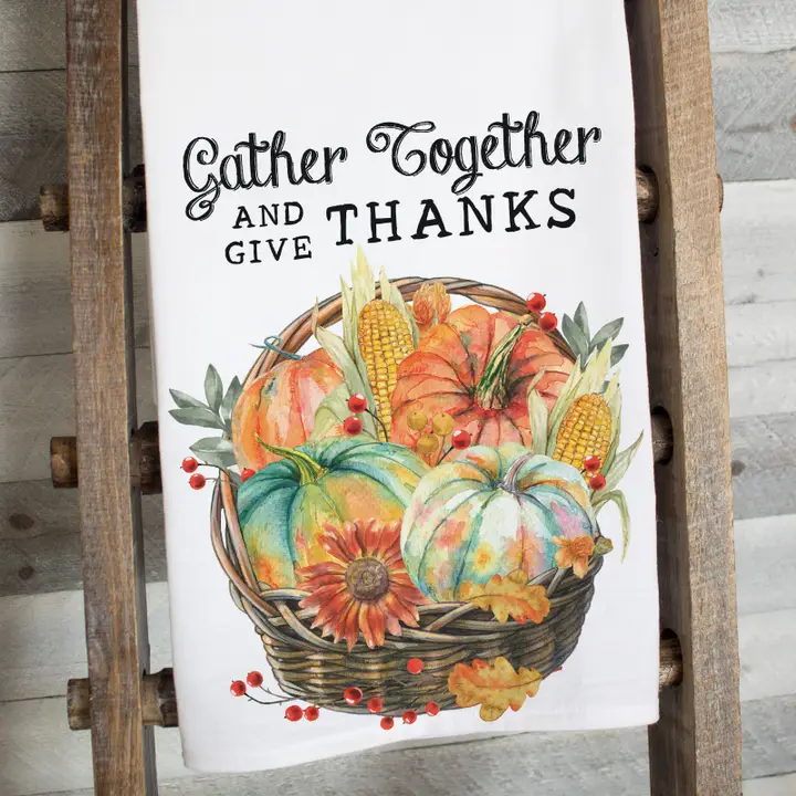 Gather Together Flour Sack Tea Towel – Rustic Farmhouse Kitchen Decor