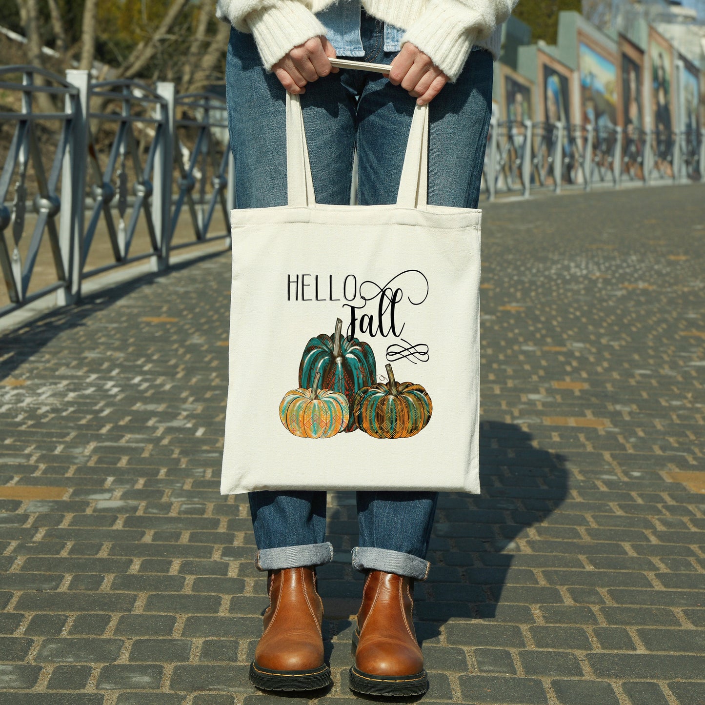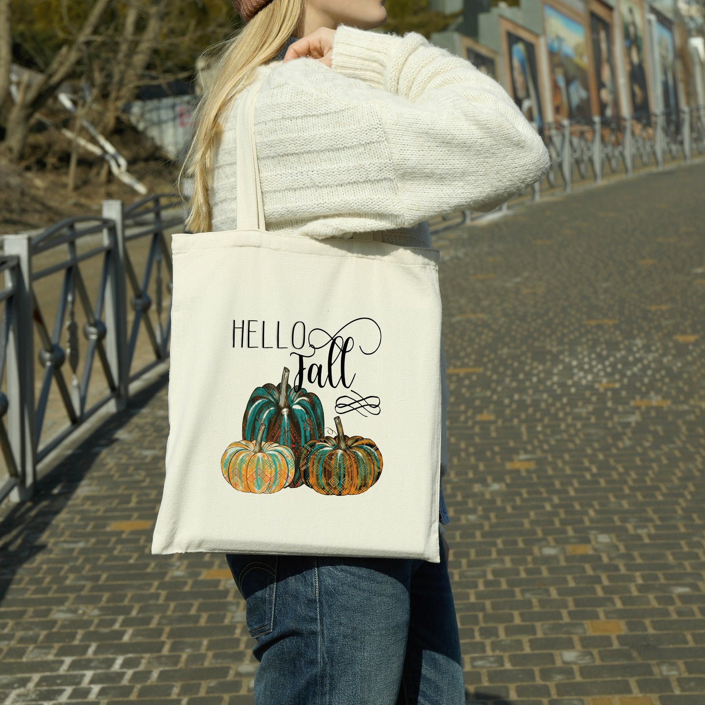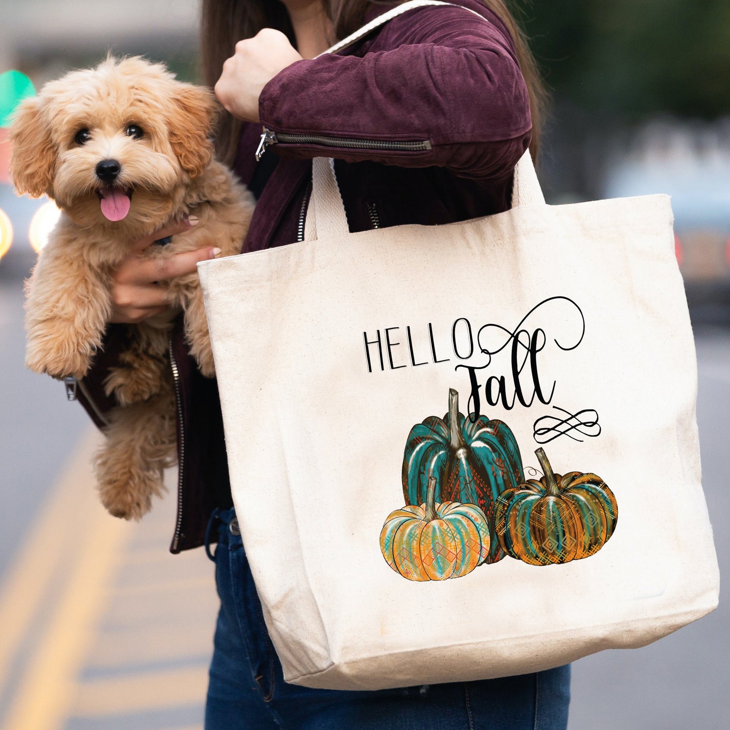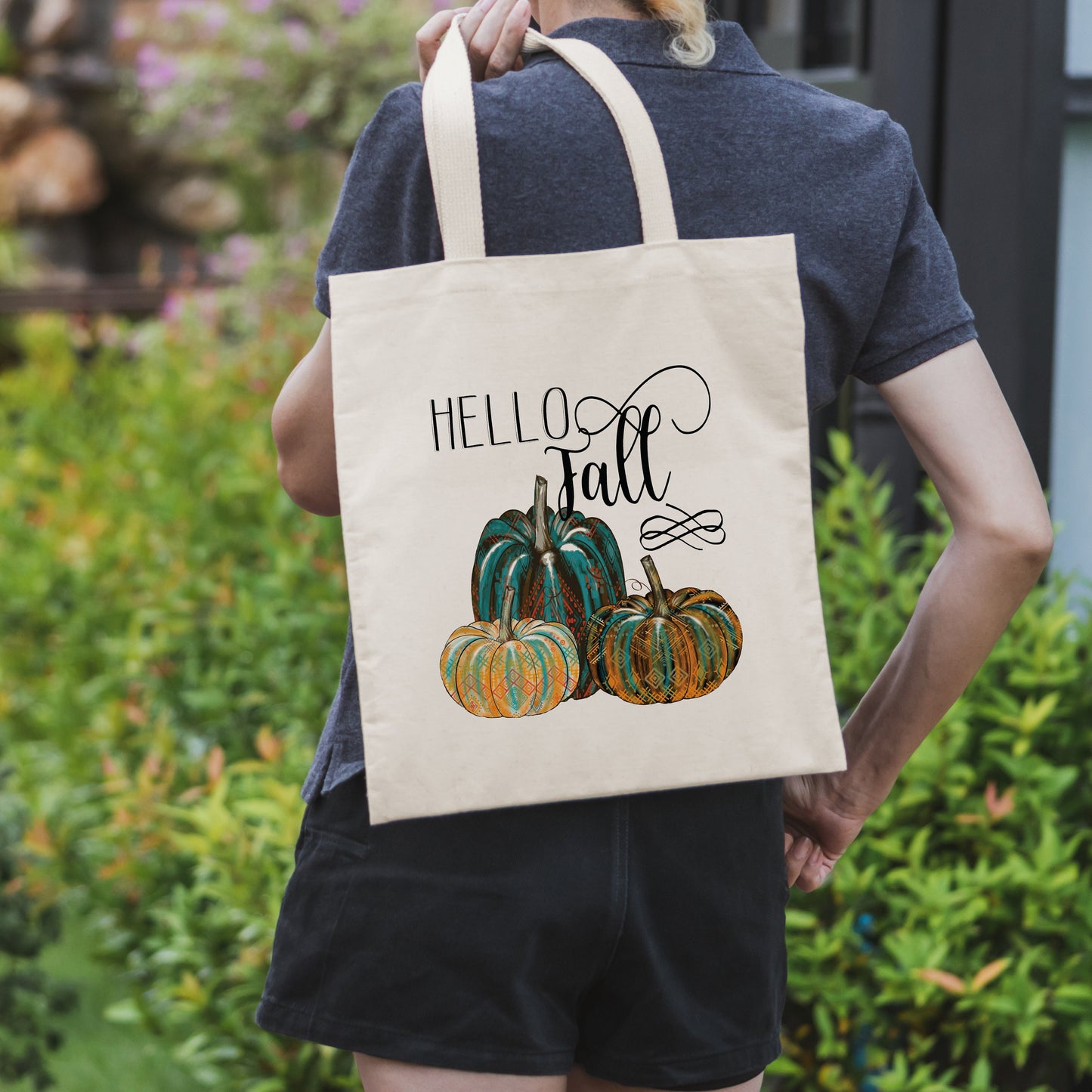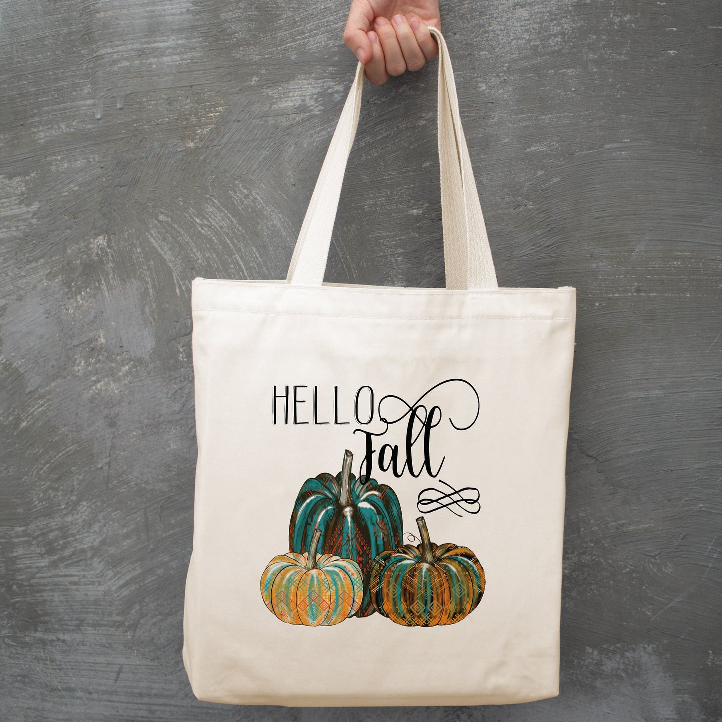 Hello Fall Aztec Pumpkins canvas tote bag - premium canvas carryall bag perfect for books, shopping or a reusable grocery bag