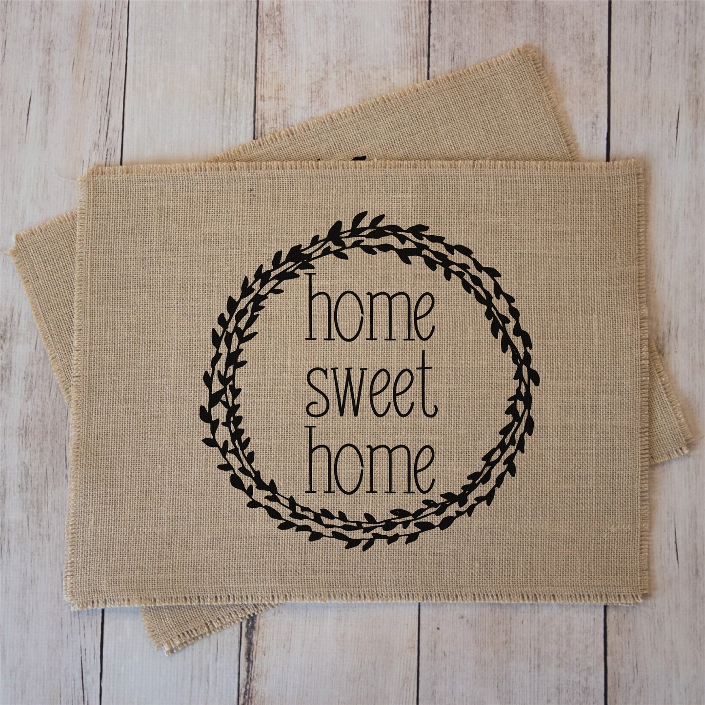 Bring farmhouse charm to your table with these Home Sweet Home burlap placemats! Packaged in sets of two, they make delightful housewarming gifts.