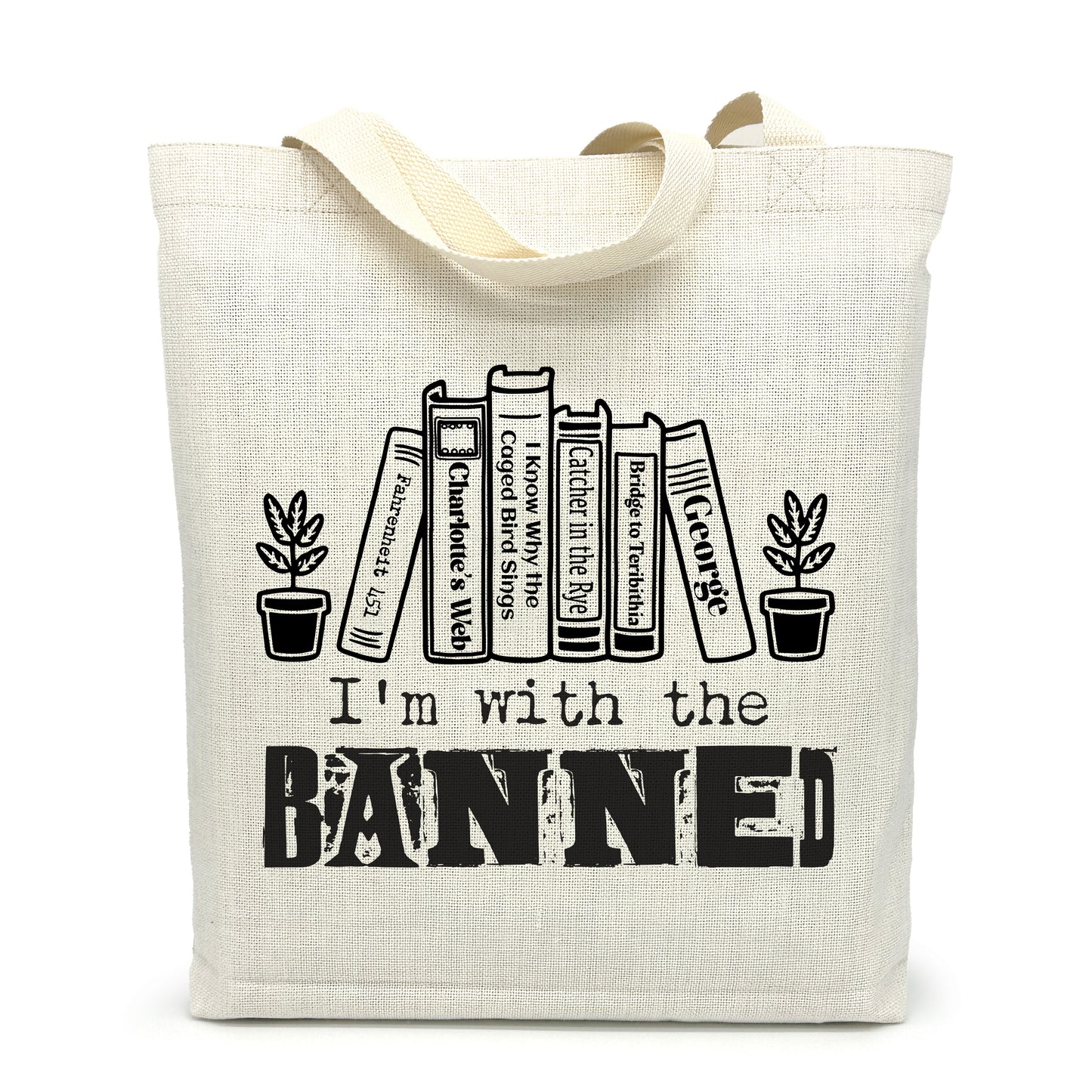 I Am With The Banned Books Canvas Tote Bag Book Worm Shopping Bag