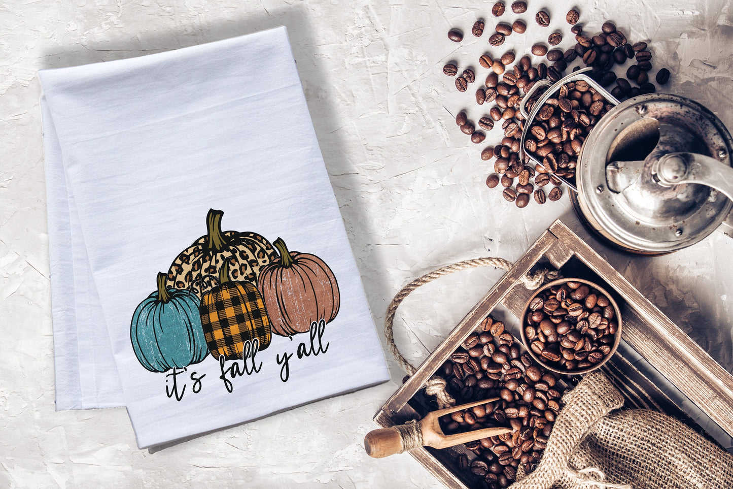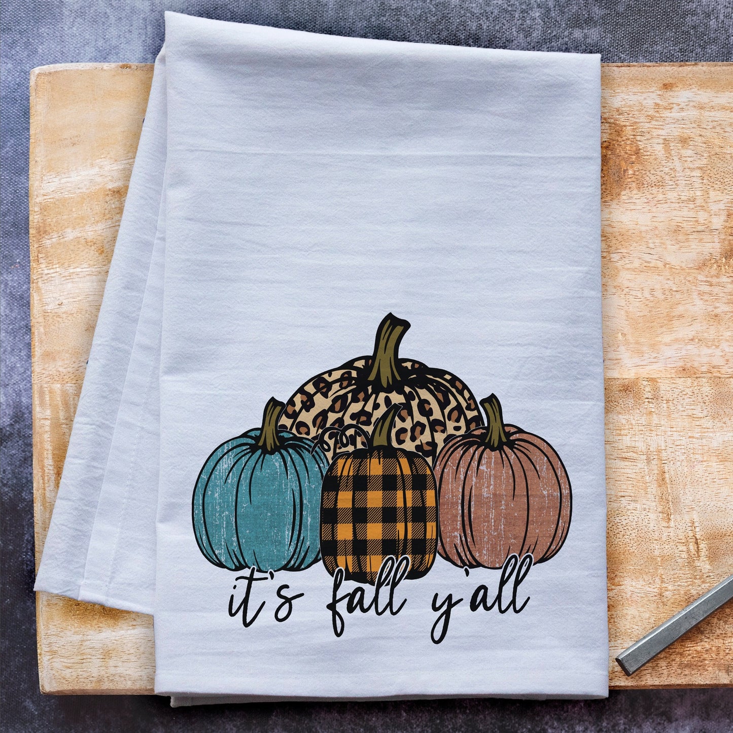 It's Fall Ya'll Autumn Pumpkins - premium flour sack dish towel, fall decor kitchen tea towel