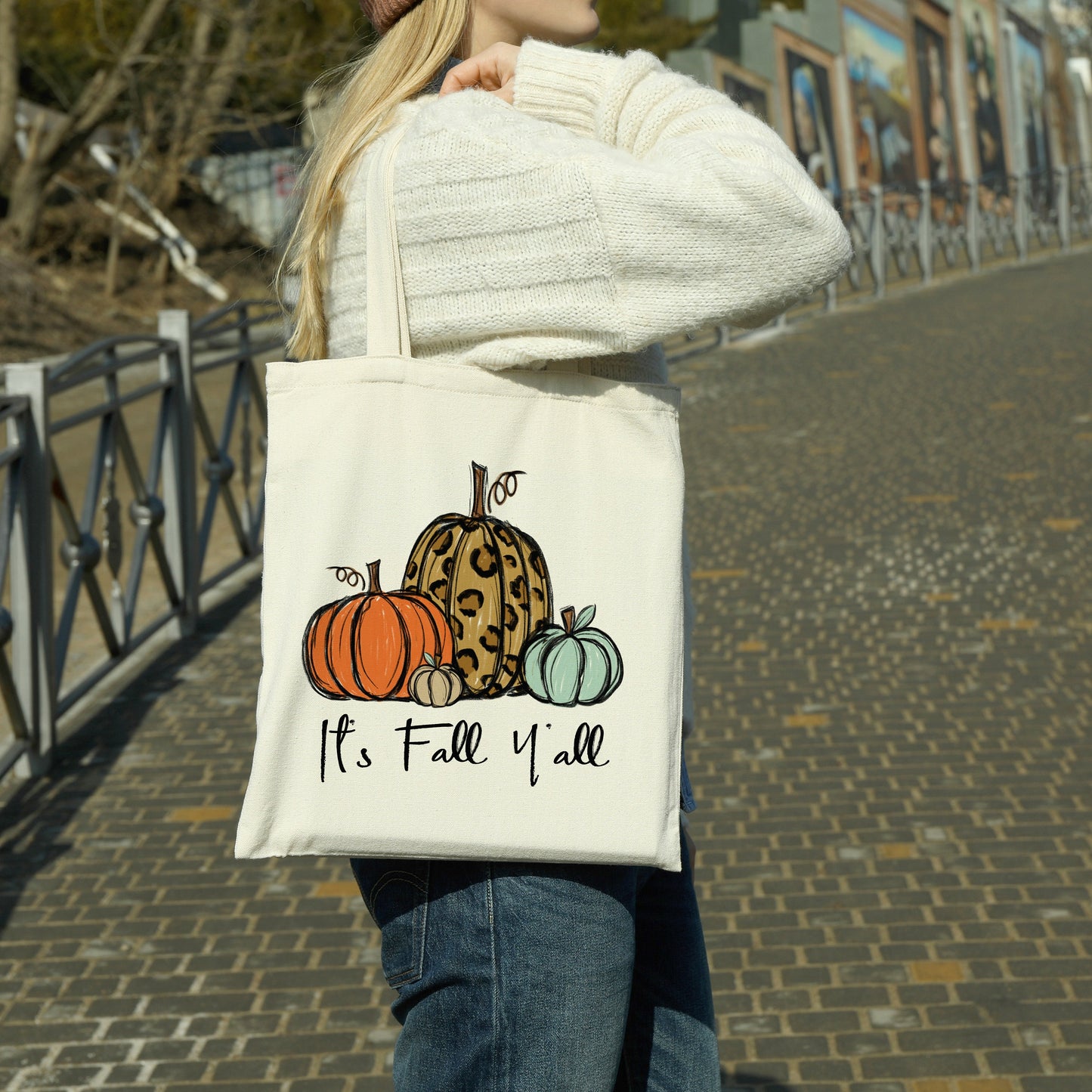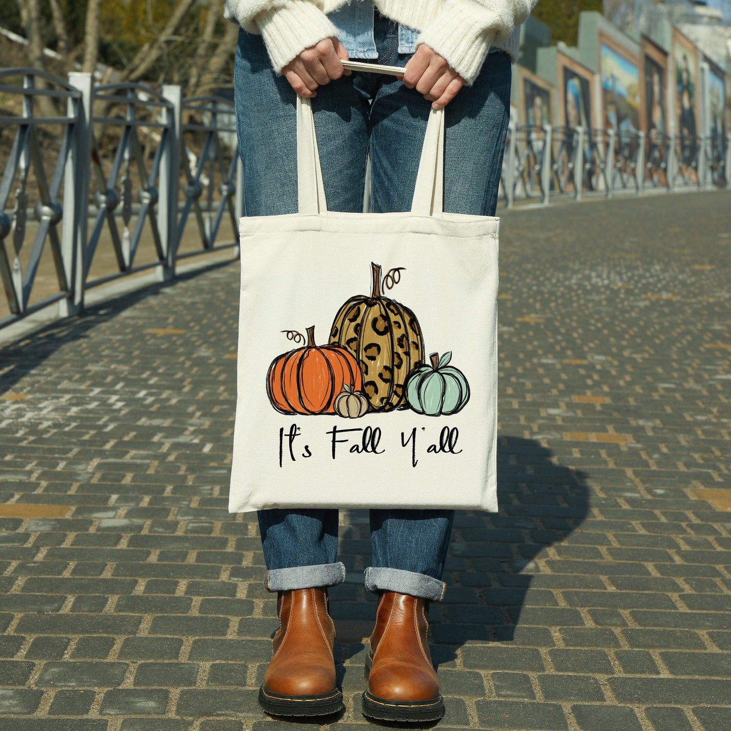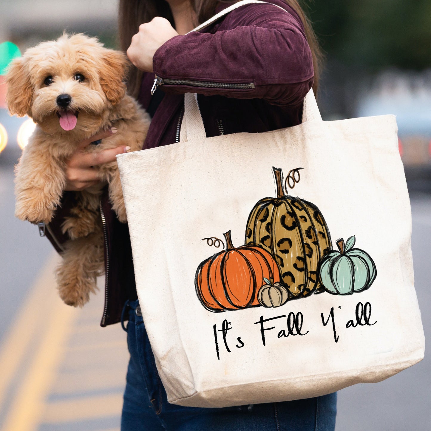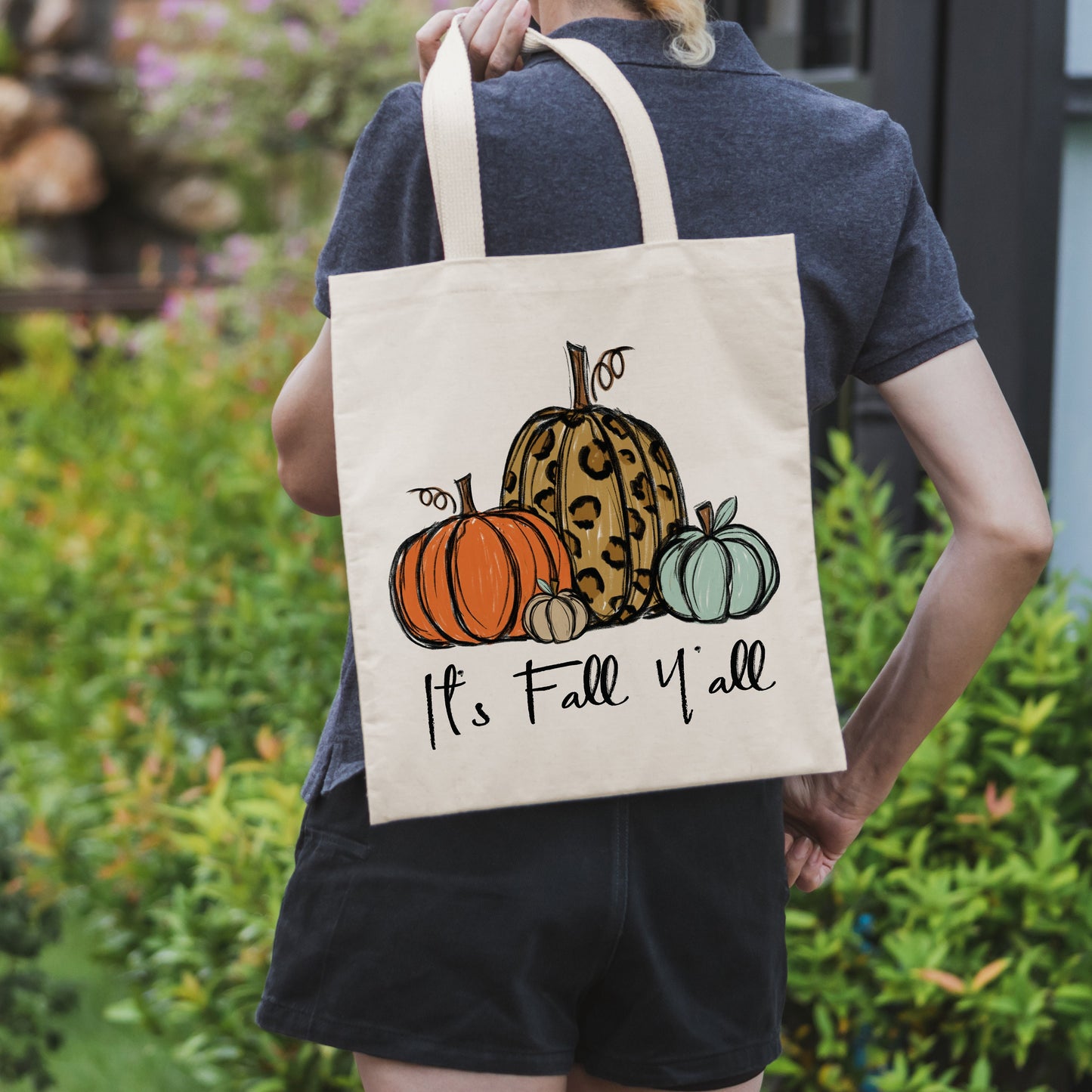 It's Fall Y'all Pumpkins canvas tote bag - premium canvas carryall bag perfect for books, shopping or a reusable grocery bag