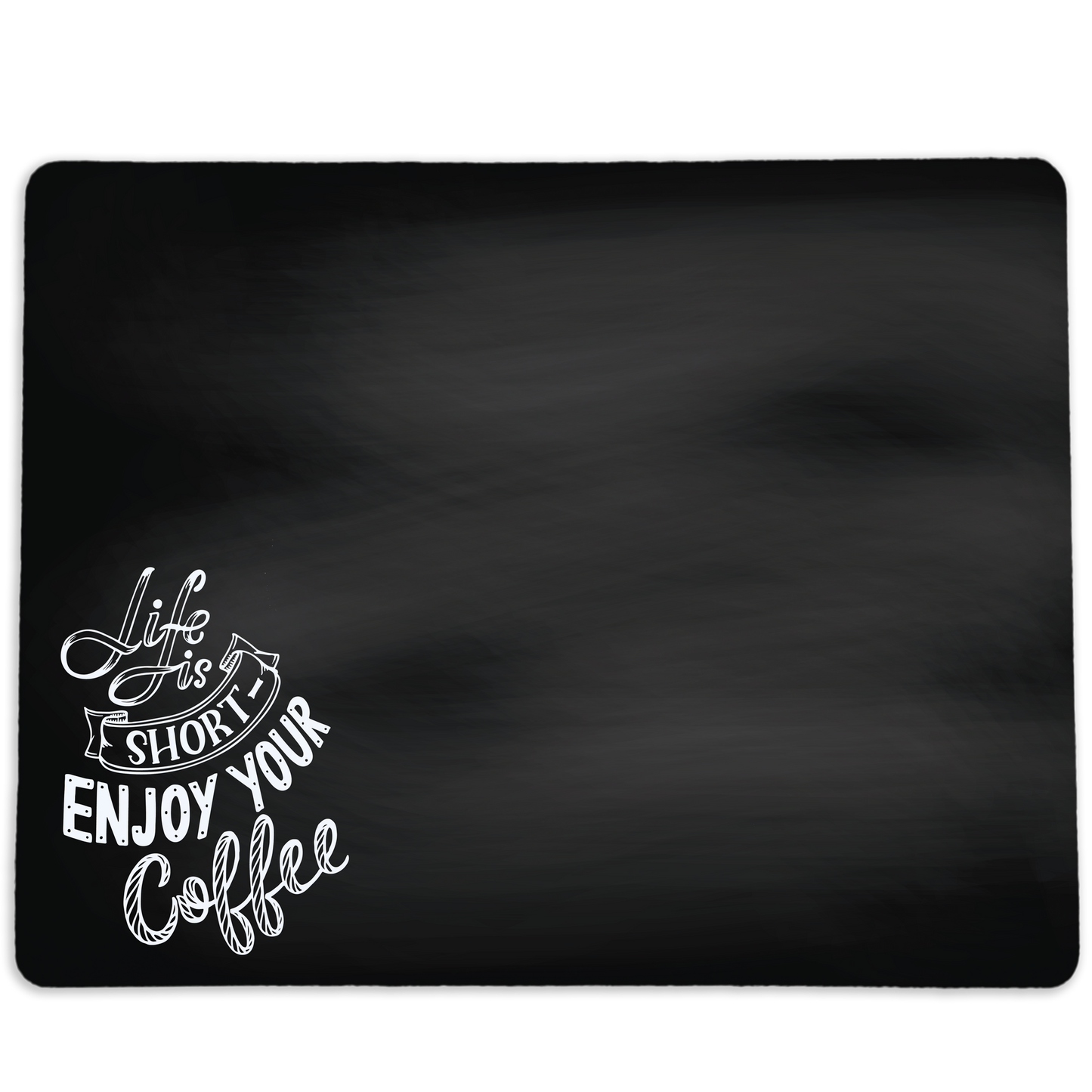 Make every coffee moment special with our "Life is Short, Enjoy Your Coffee" Mat. This charming mat is designed to fit perfectly under your coffee maker, protecting your countertop from spills and stains. Featuring an uplifting phrase in a stylish white font, it adds a touch of inspiration to your kitchen or office space. Crafted from durable, easy-to-clean material, this mat is both functional and aesthetically pleasing. Elevate your coffee experience and remind yourself to savor every cup. A perfect addition for any coffee lover!