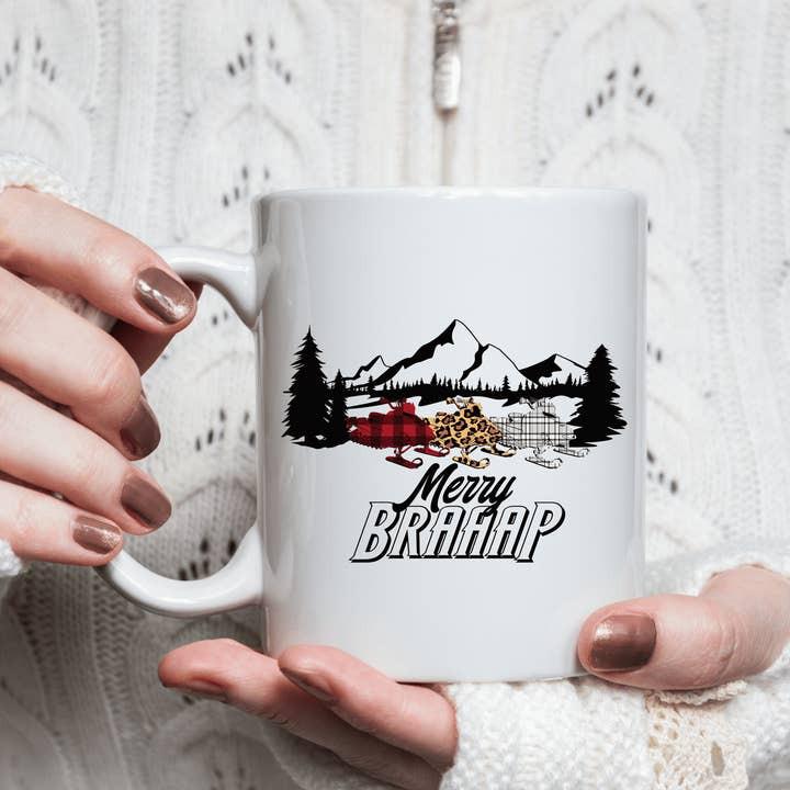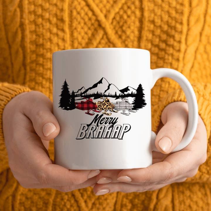 With its bold "Merry Braaap" graphic, this mug brings a touch of adventure and snow machine excitement to your mug collection. It’s microwave and dishwasher-safe, offering both practicality and fun.