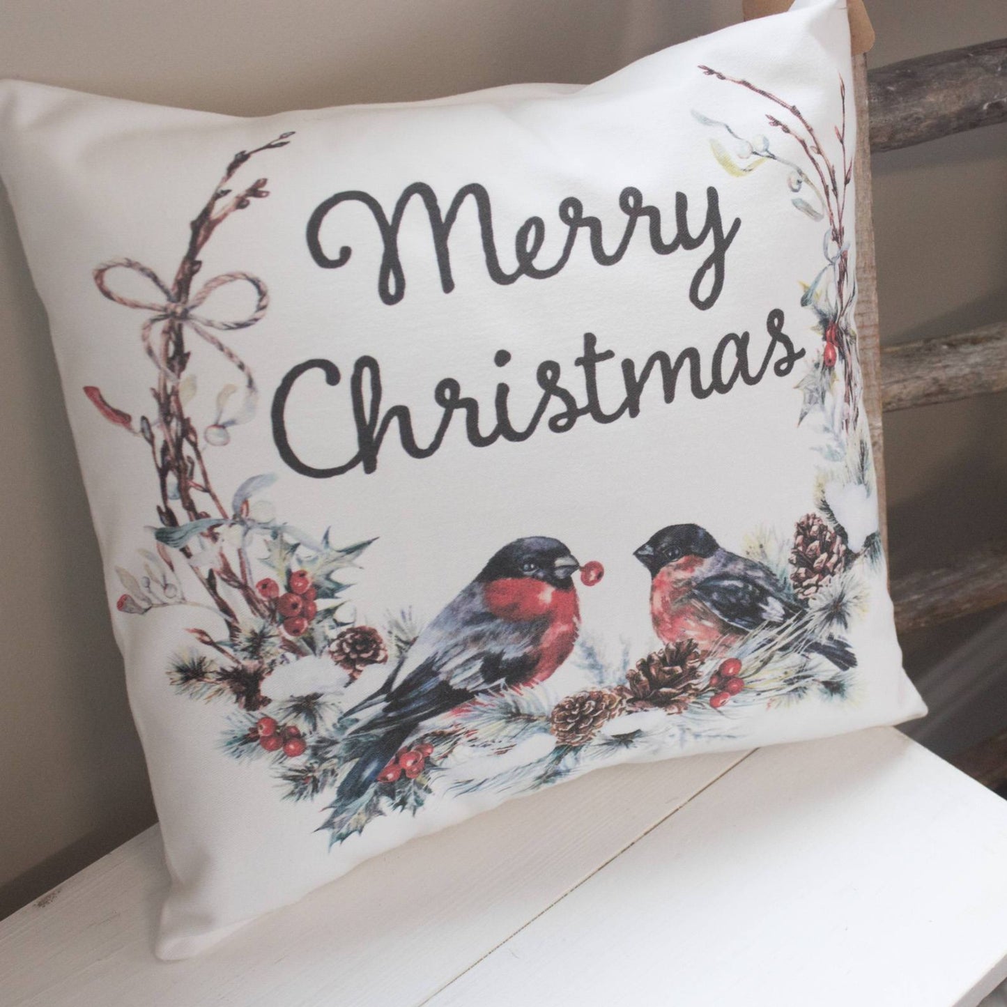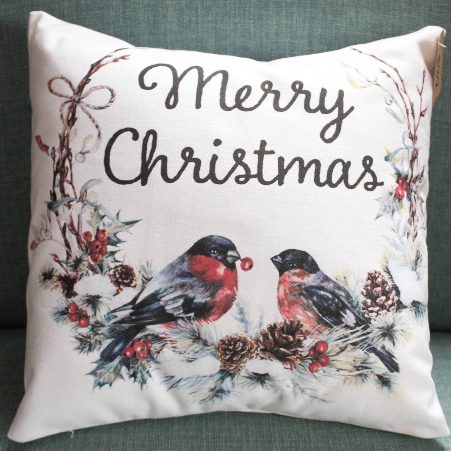 This pair of Bullfinch want to wish you a very Merry Christmas! It's made with a super soft white twill , and would be a lovely holiday gift for a bird lover or charming addition to your own home decor! It's perfect for an entryway bench, a sitting chair by the fireplace, in your office or even your craft room!