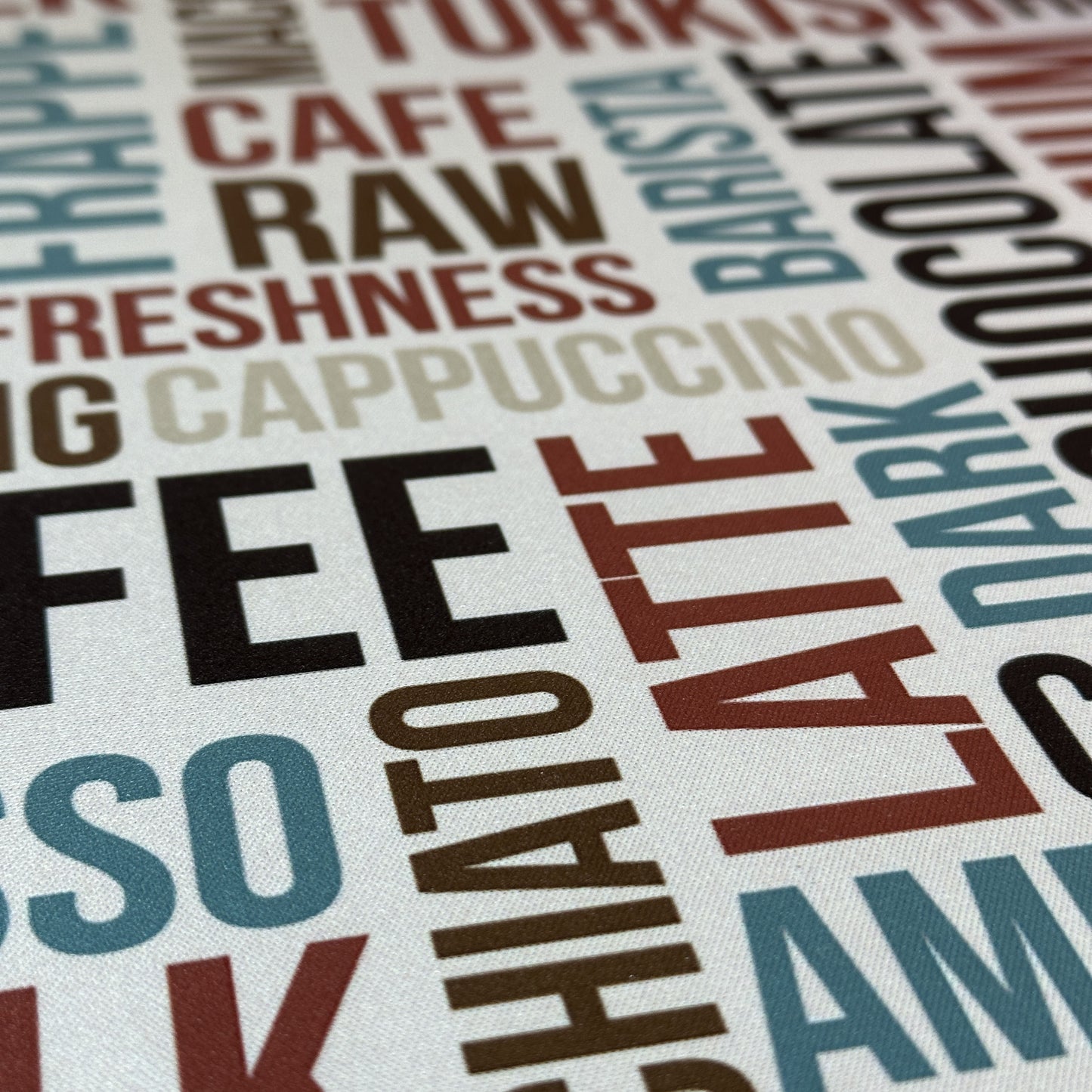 • Vibrant, colorful coffee bean print adds style to any coffee station