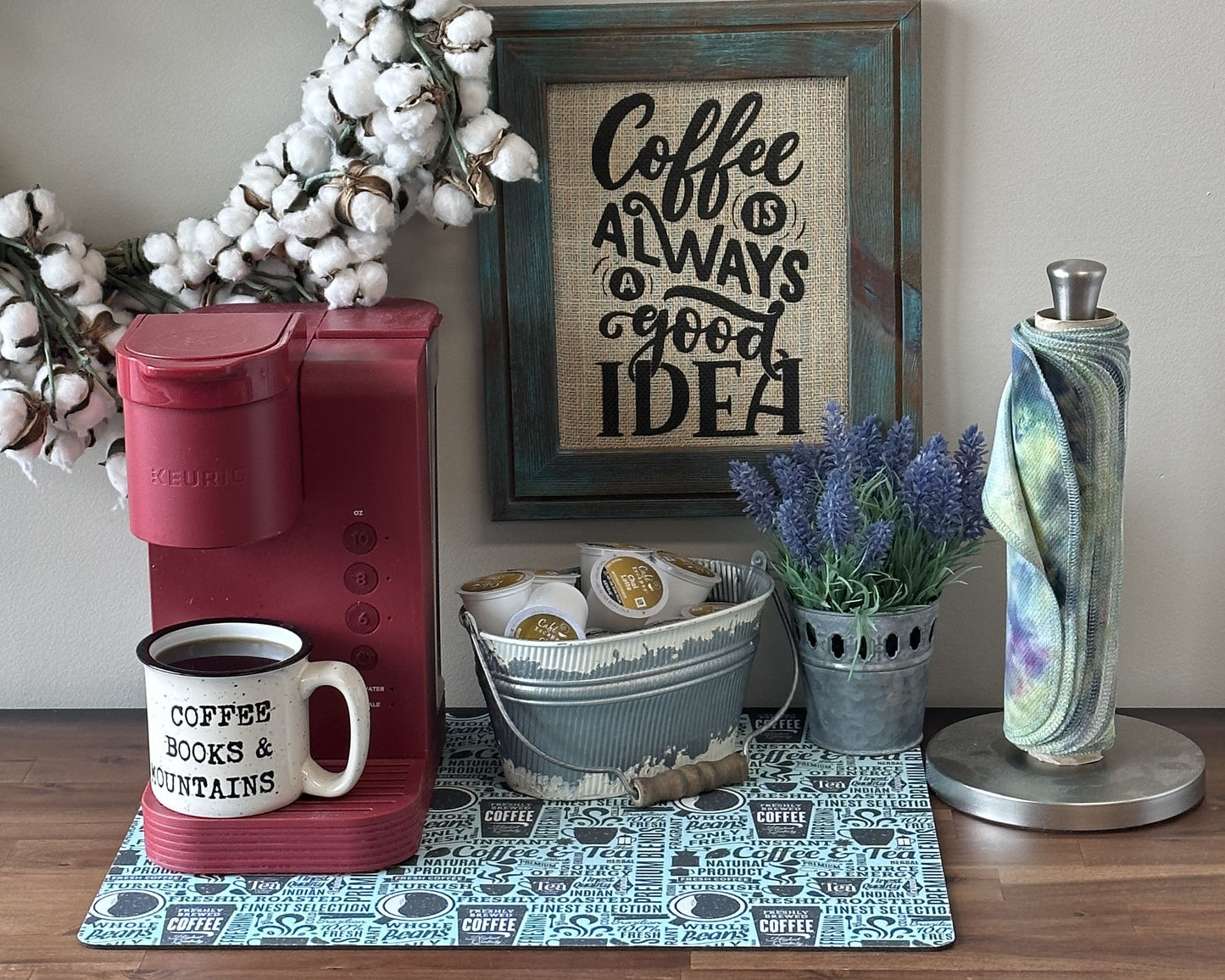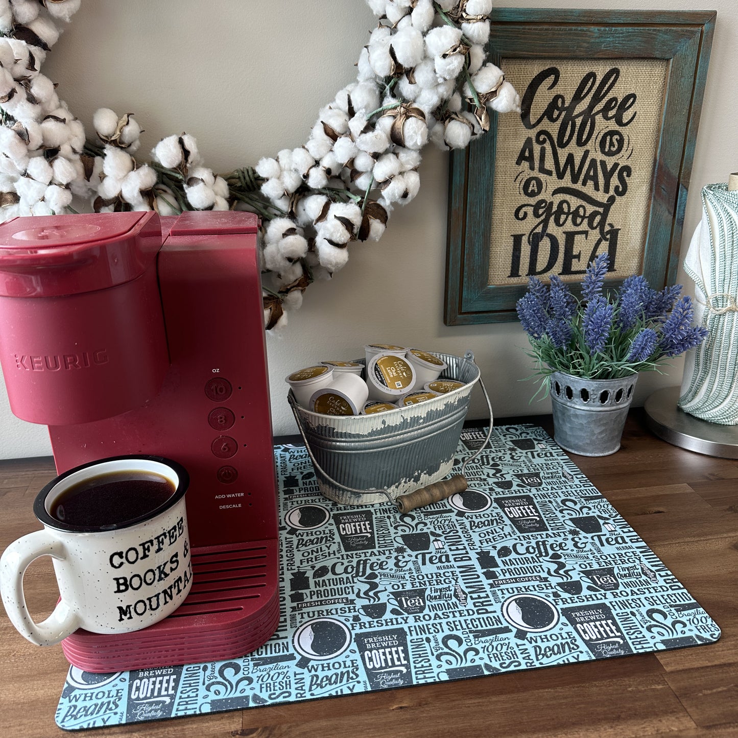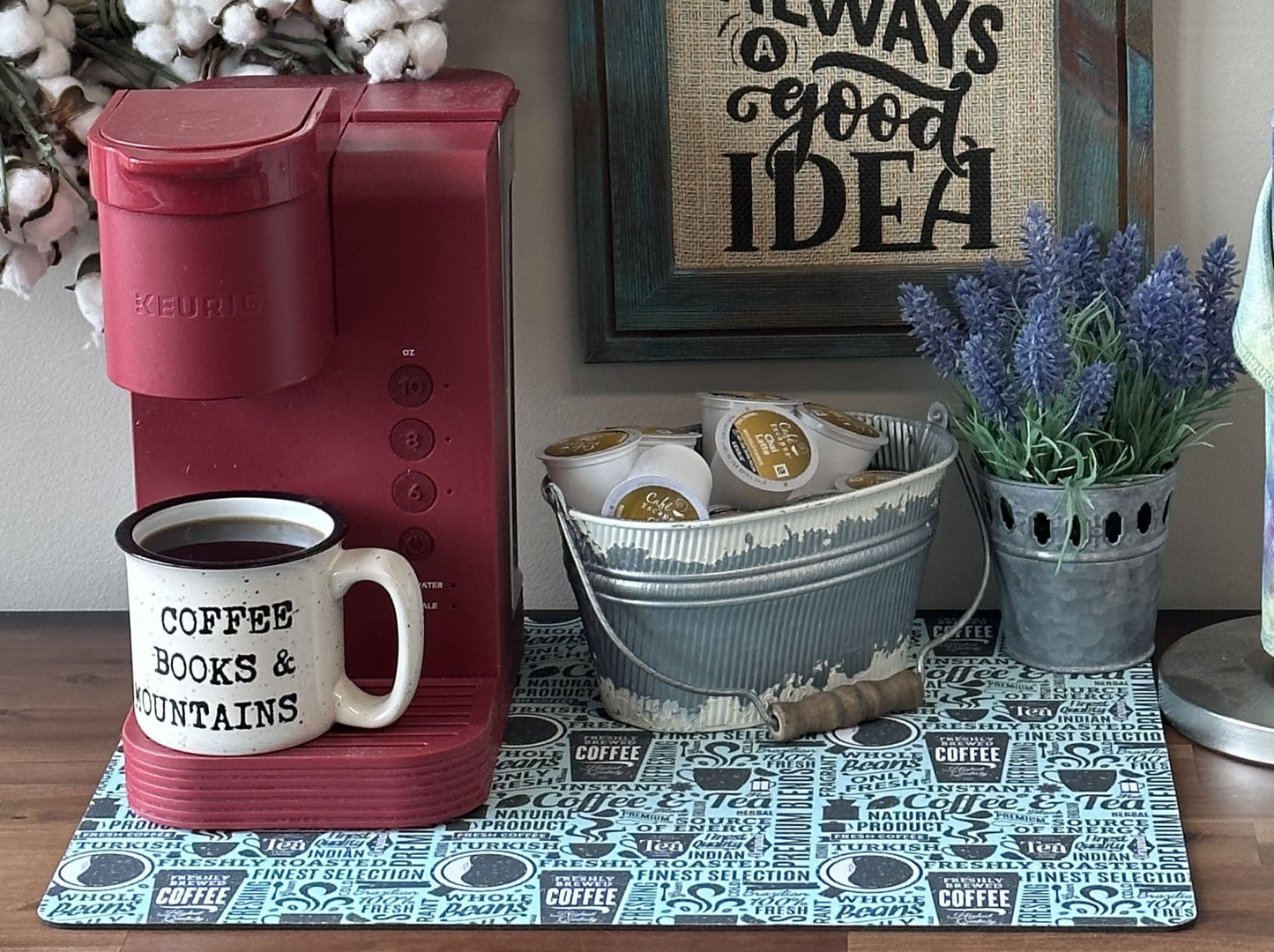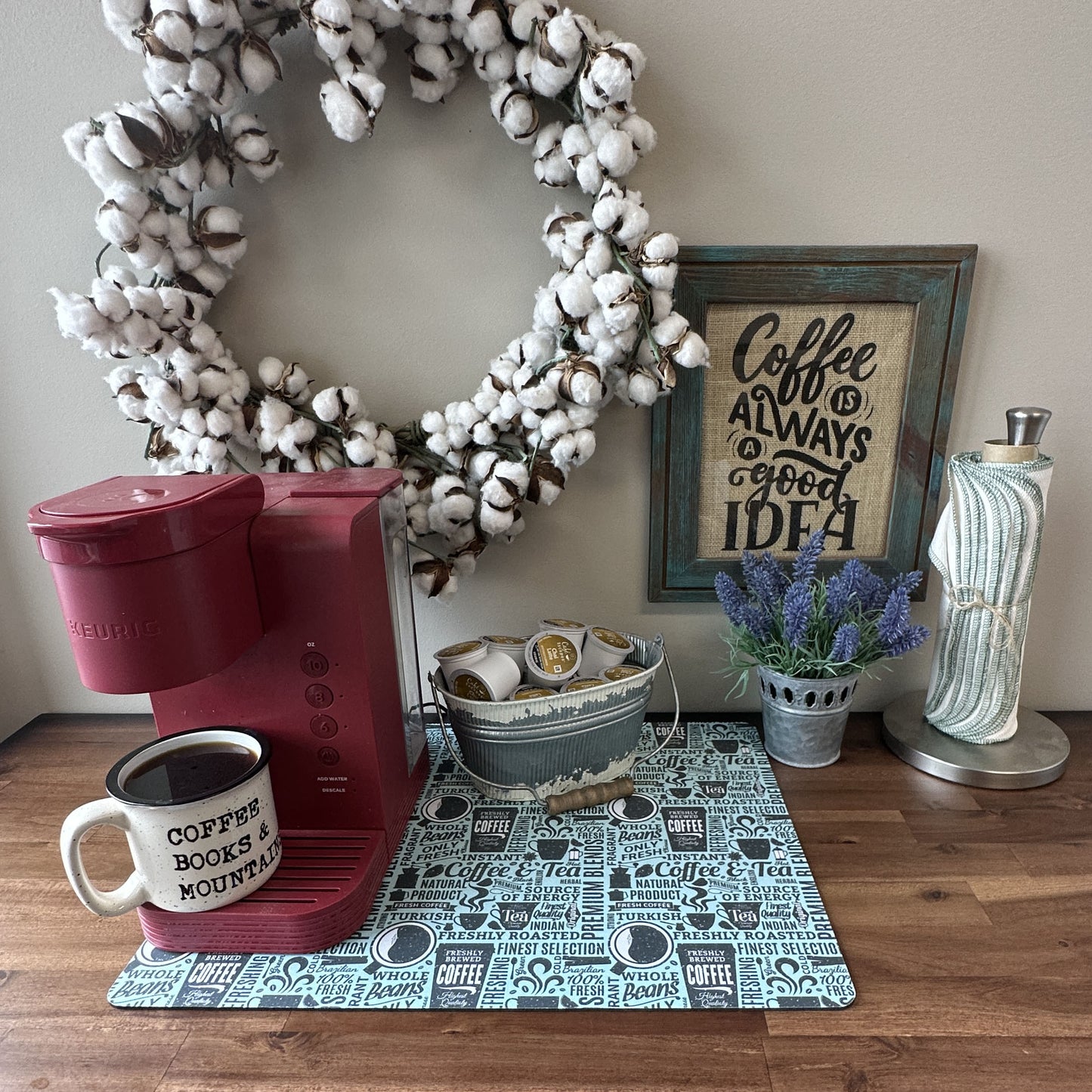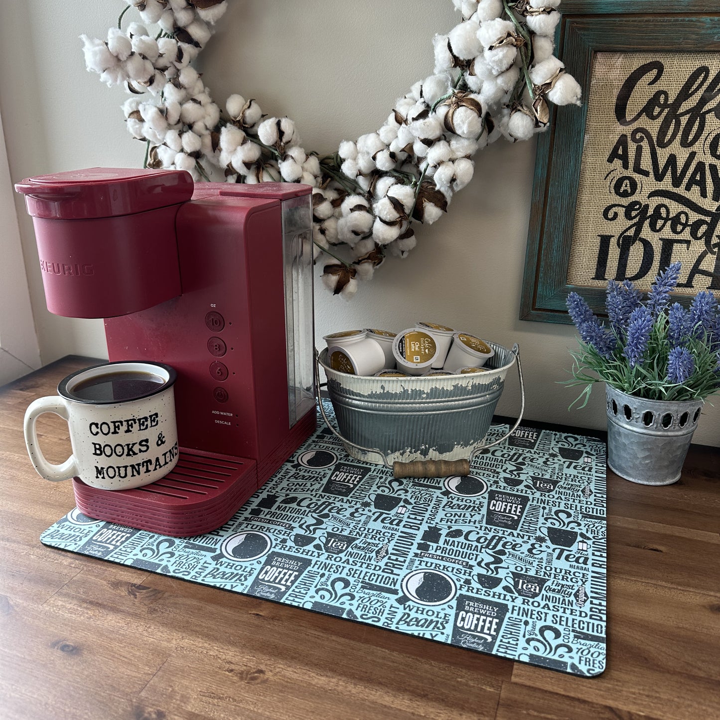 Bring a sprinkle of café charm right into your home with a Good Morning Coffee Maker Mat. This delightful coffee maker mat is the perfect companion for your coffee maker, creating a neat and dedicated space for your caffeine rituals. It's more than just a practical accessory; it's a slice of decor that caters to the home decor enthusiast and coffee aficionado alike.