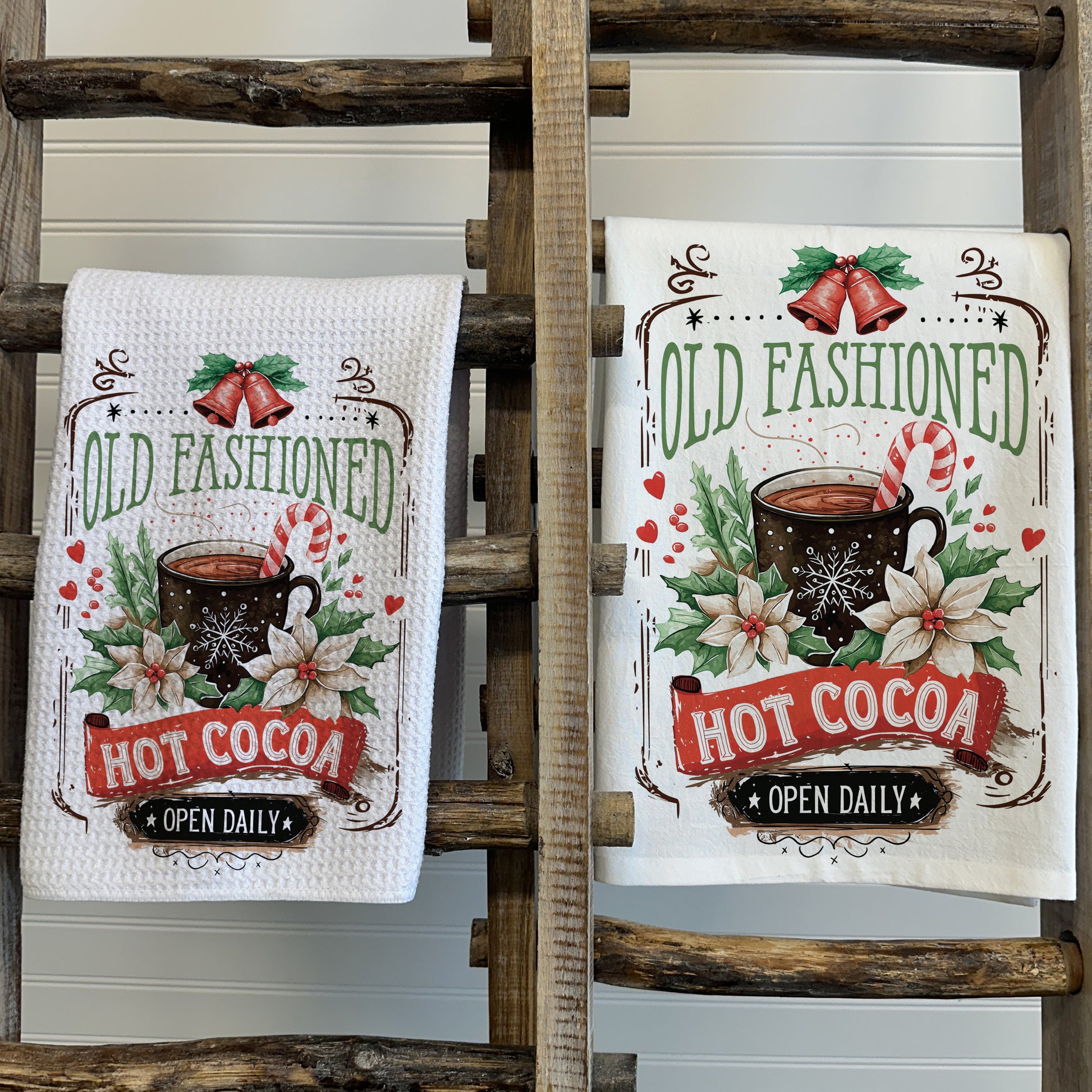 Old Fashioned Hot Cocoa Tea Towel – Waffle Weave or Flour Sack Cotton
